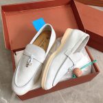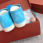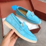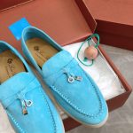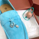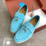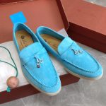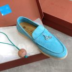 Loro Piana LP Summer Charms Walk Suede Couples Classic All Seasons Loafers For Women Lake Blue