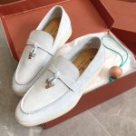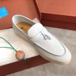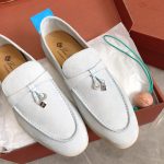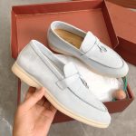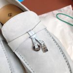 Loro Piana LP Summer Charms Walk Suede Couples Classic All Seasons Loafers For Women Lake Blue