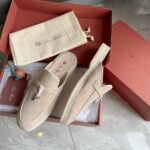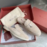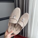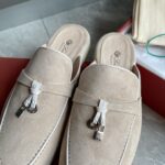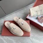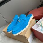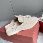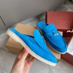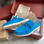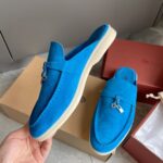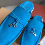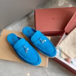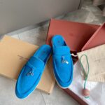 Loro Piana LP Summer Charms Walk Suede Classic Half Slippers For Women Inky Blue/Withe