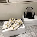 Valentino 2021 spring and summer new rivet sandals pointed toe low heels (White)