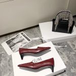 Jil Sander 2021 early spring new hand-woven Lambskin cat heel mid-heel shoes (Burgundy)