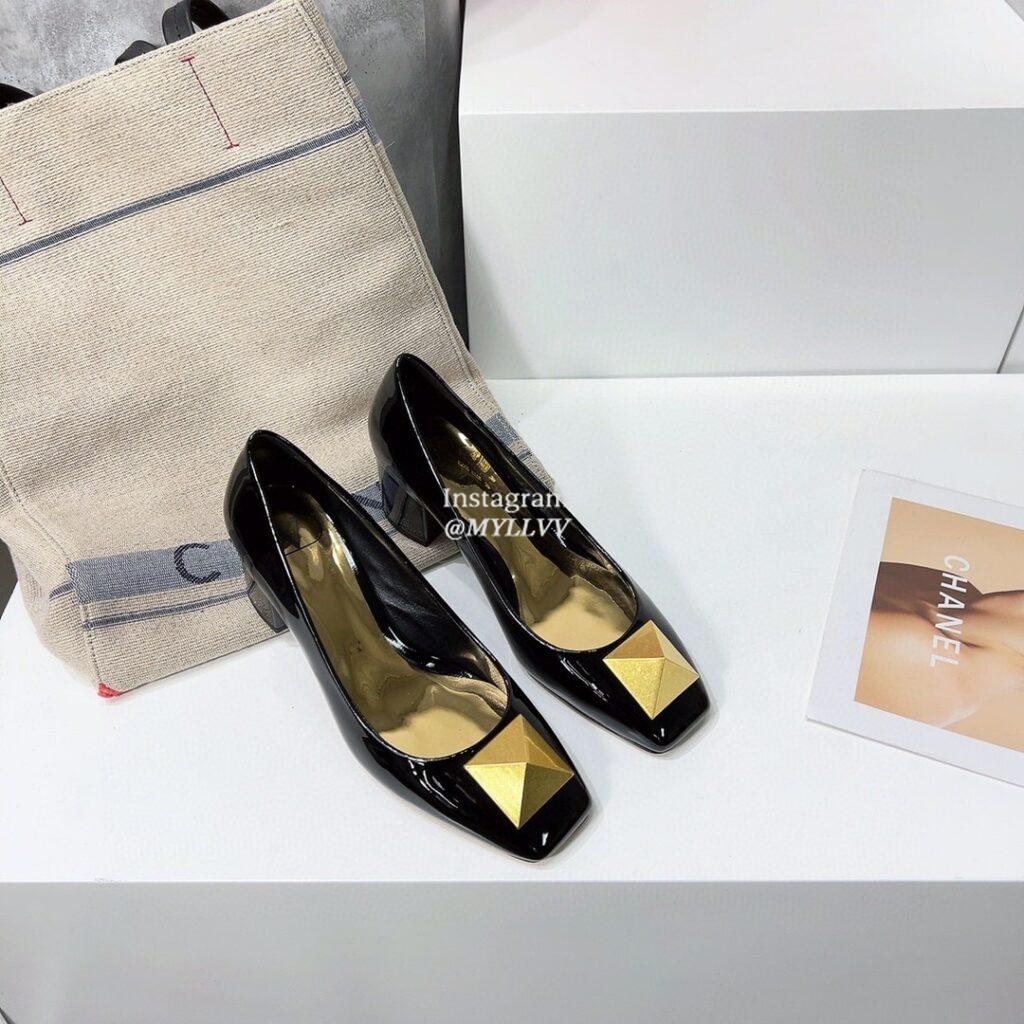 Top Quality Version:MYLLVV » Valentino Big Gold Rivet Patent Leather High Heel Shoe Black