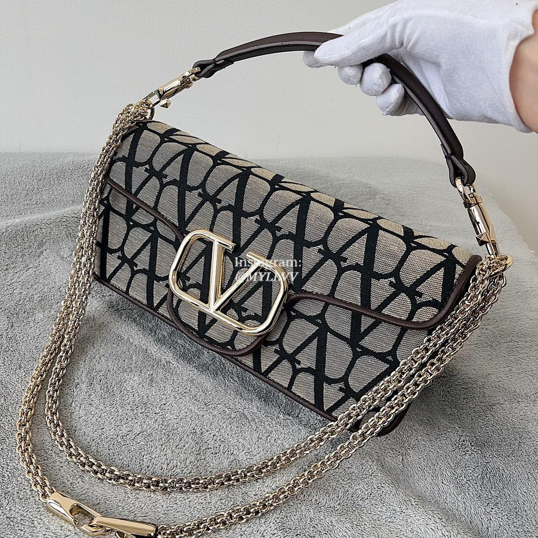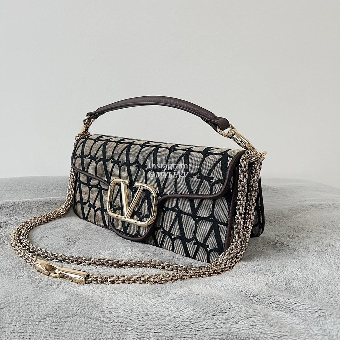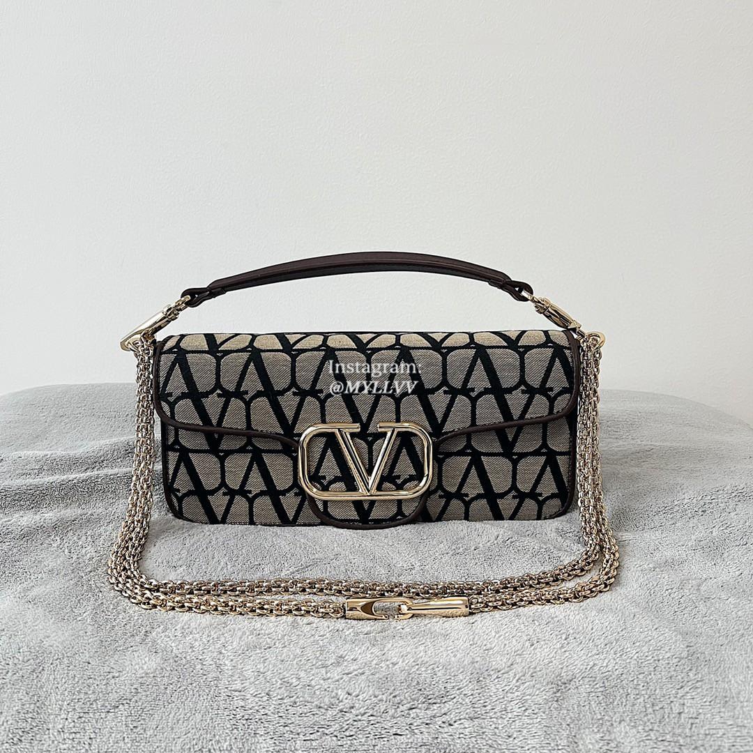 Top Quality Version:MYLLVV » Valentino Canvas And Cowhide V Logo Signature Large Shoulder Bag Black 22023L