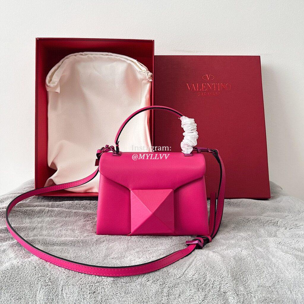 Top Quality Version:MYLLVV » Valentino Cowhide Big Rivet Small Shoulder Bag Rose Red 22020S