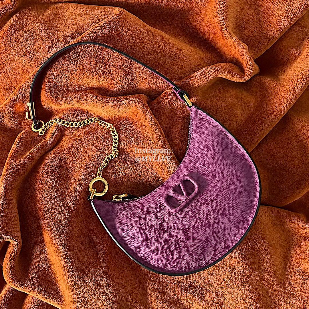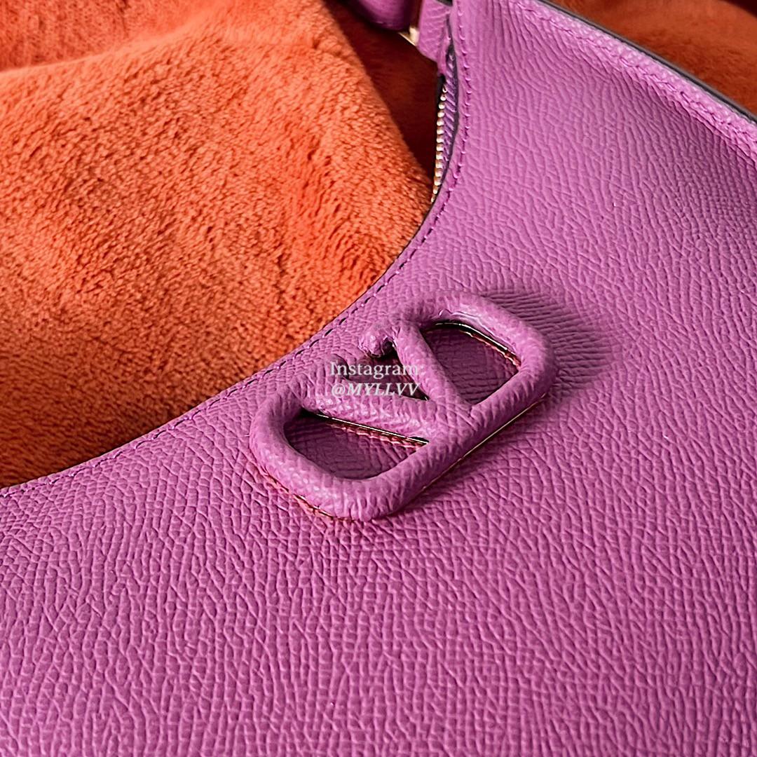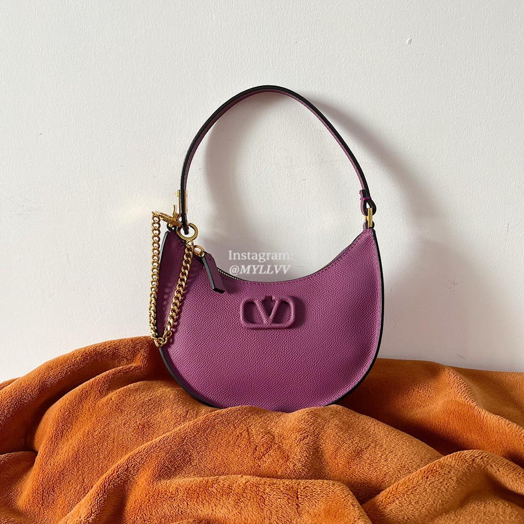 Dimension: 20.0 × 12.0 × 4.0 cm Top Quality Version:MYLLVV » Valentino Cowhide V Logo Signature Hobo Bag Purple 22004