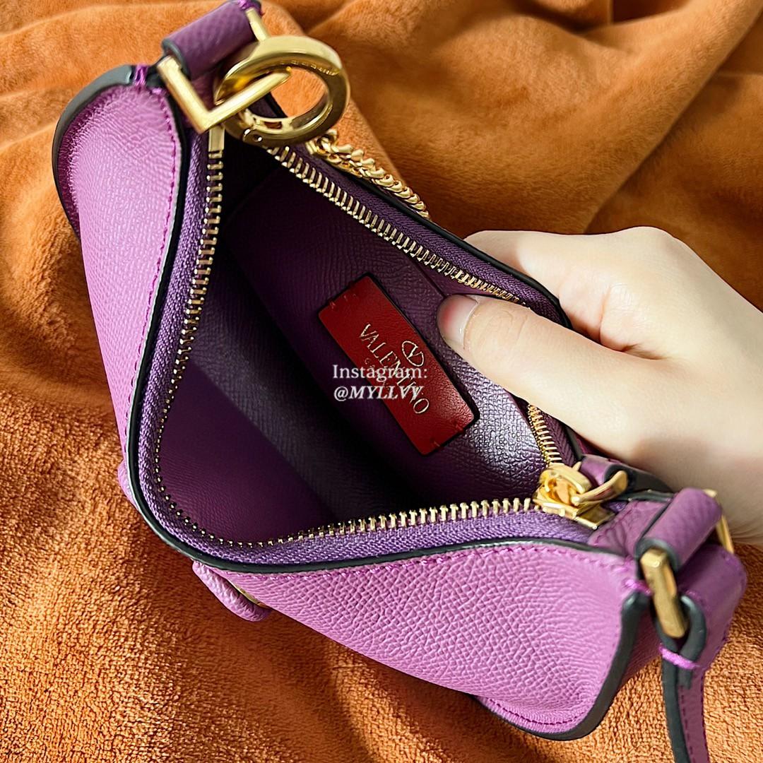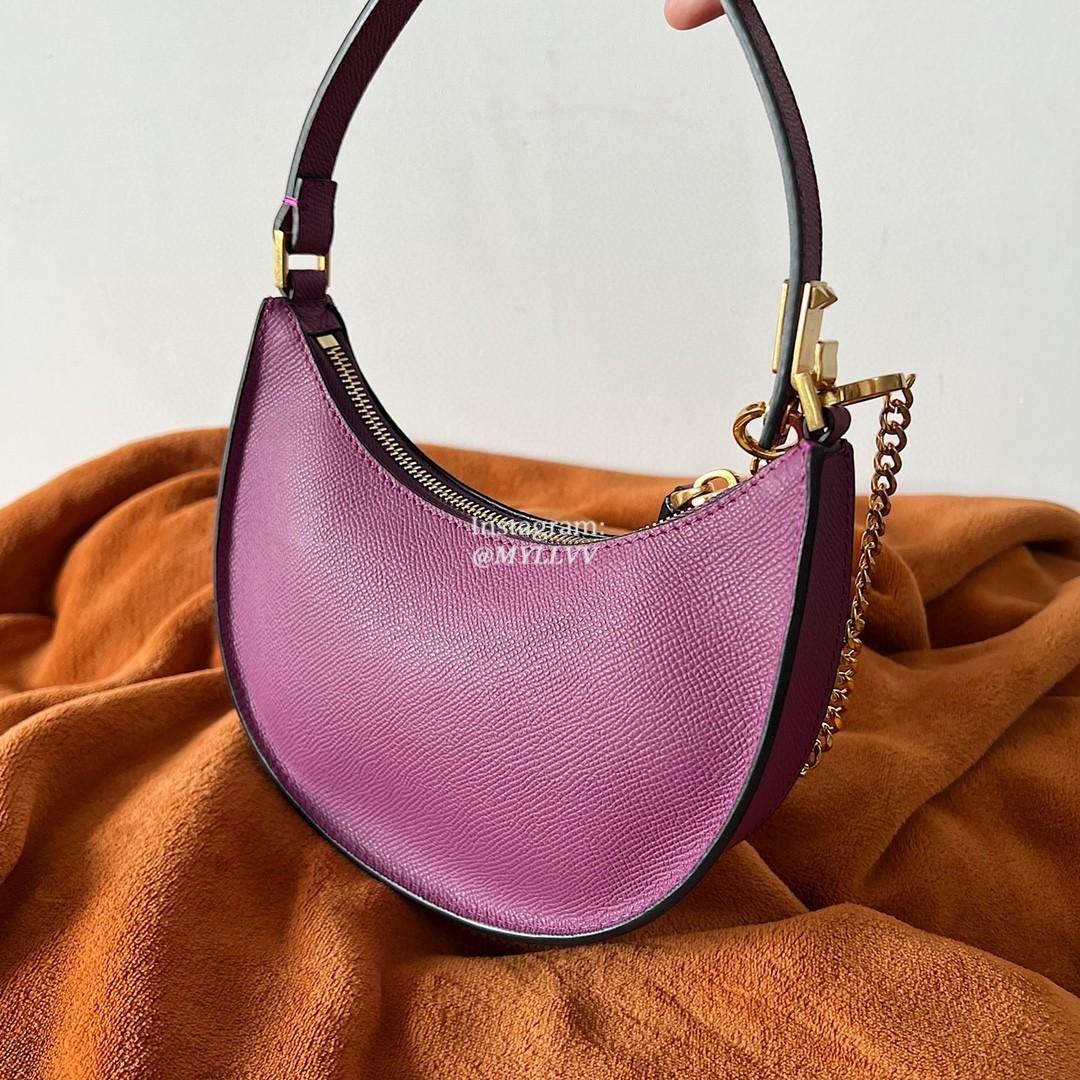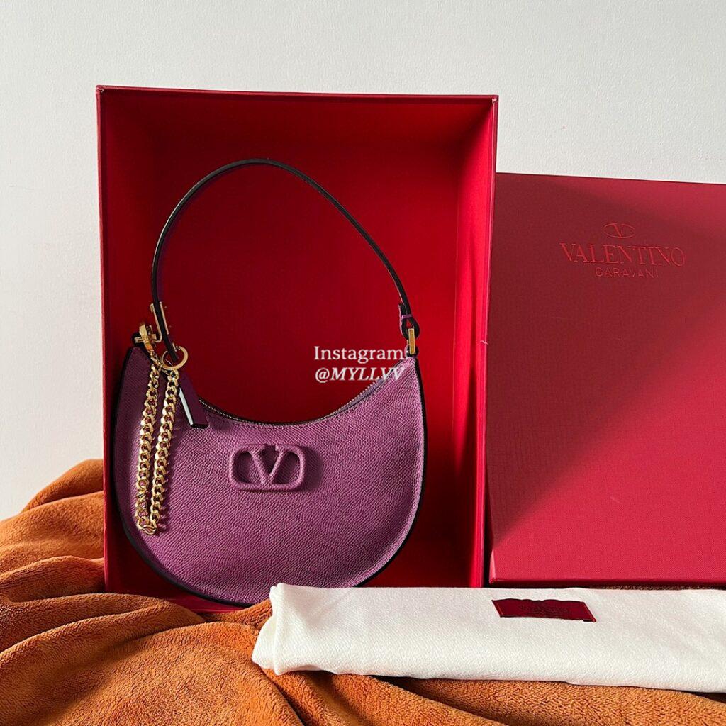 Dimension: 20.0 × 12.0 × 4.0 cm Top Quality Version:MYLLVV » Valentino Cowhide V Logo Signature Hobo Bag Purple 22004