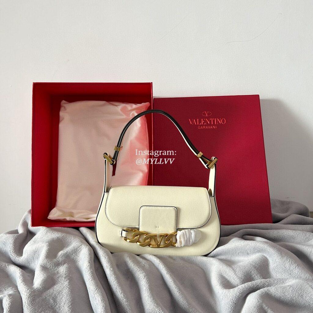 Top Quality Version:MYLLVV » Valentino Cowhide V Logo Signature Large Chain Bag White 22006