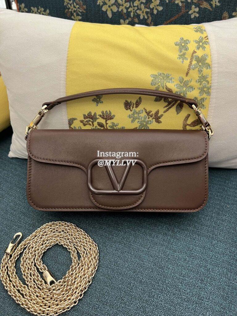 Top Quality Version:MYLLVV » Valentino Cowhide V Logo Signature Large Shoulder Bag Coffee 3030L