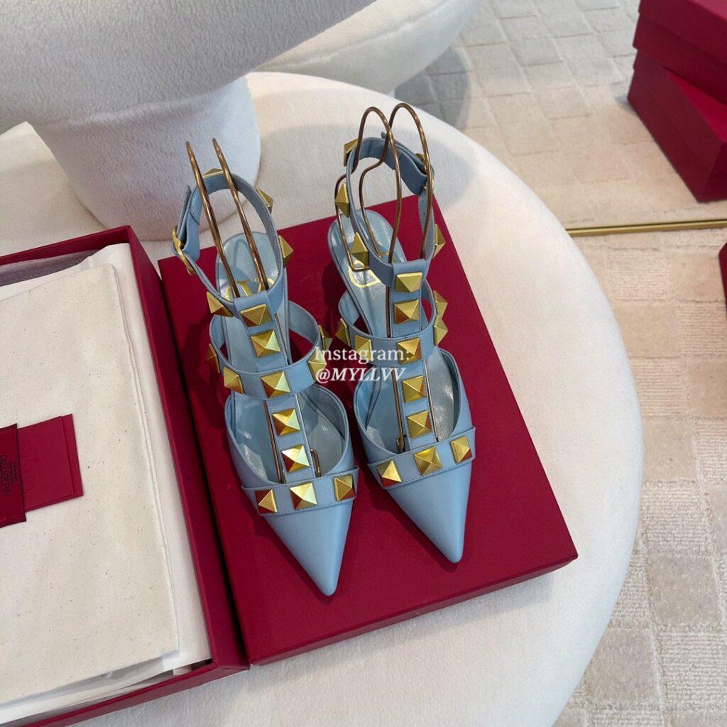 Top Quality Version:MYLLVV » Valentino Garavani Big Rivet Cowhide High Heel Sandal Shoe Blue