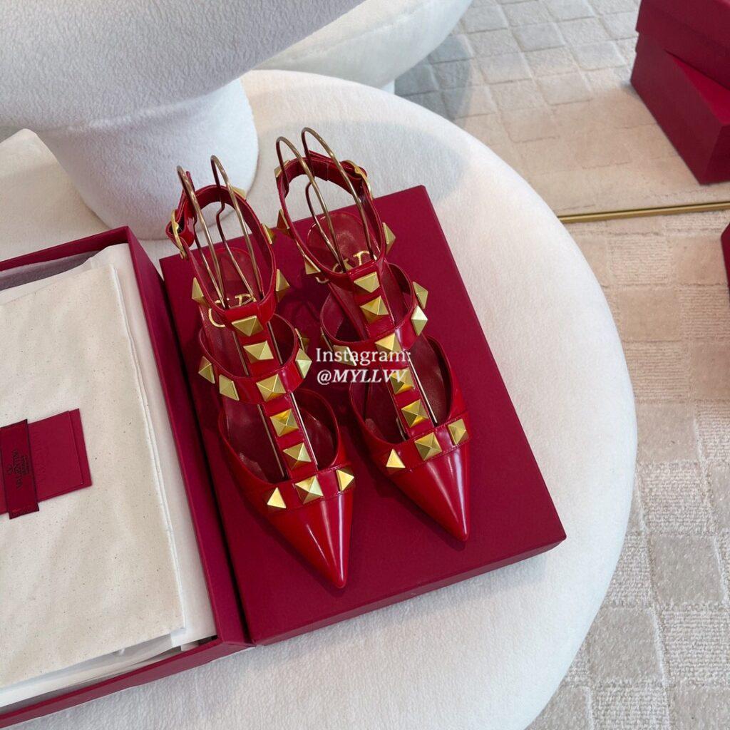 Top Quality Version:MYLLVV » Valentino Garavani Big Rivet Cowhide High Heel Sandal Shoe Red