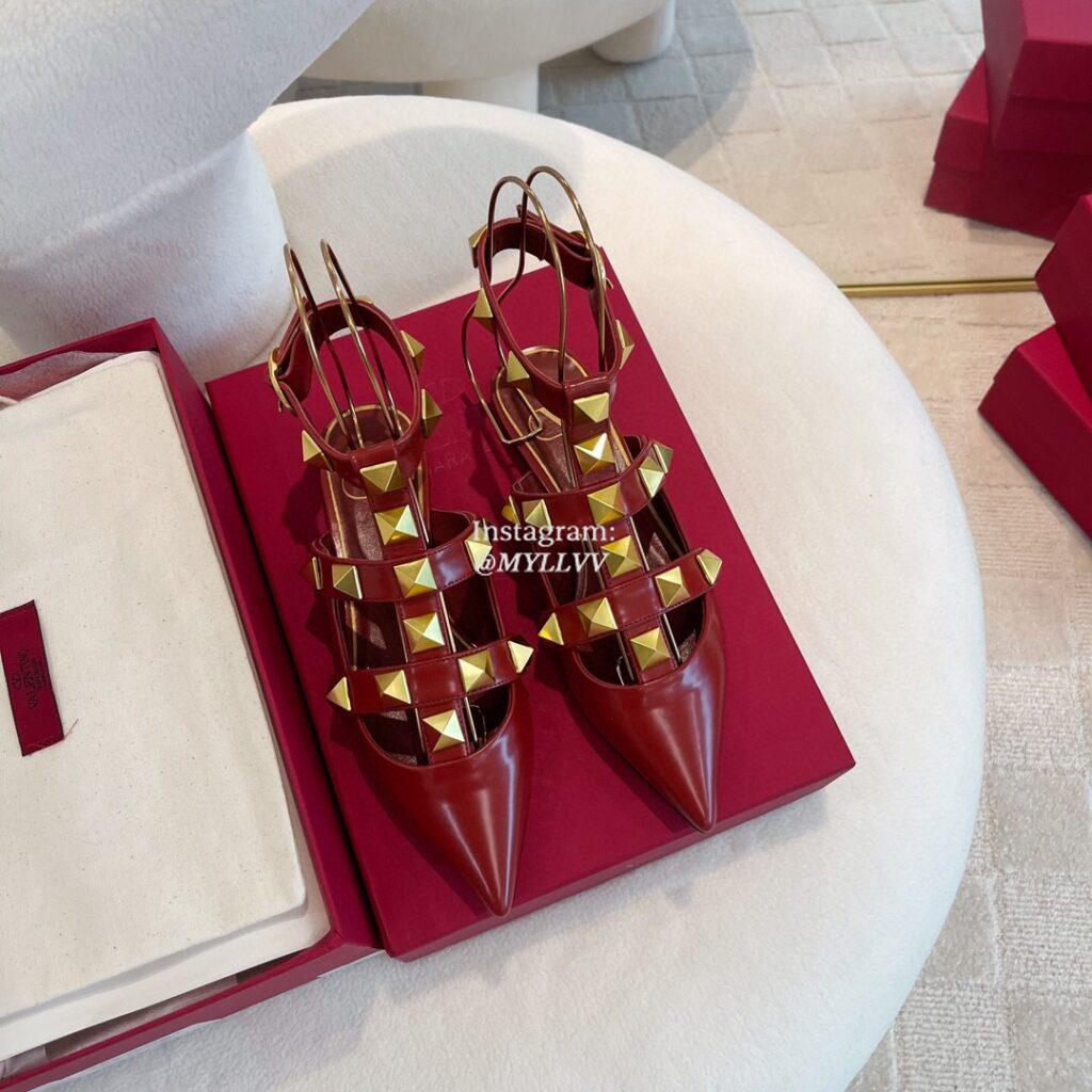 Top Quality Version:MYLLVV » Valentino Garavani Big Rivet Cowhide Sandal Shoe Wine Red
