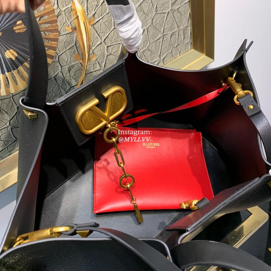 Top Quality Version:MYLLVV » Valentino Garavani Escape Cowhide Large Shopping Bag Black 0099