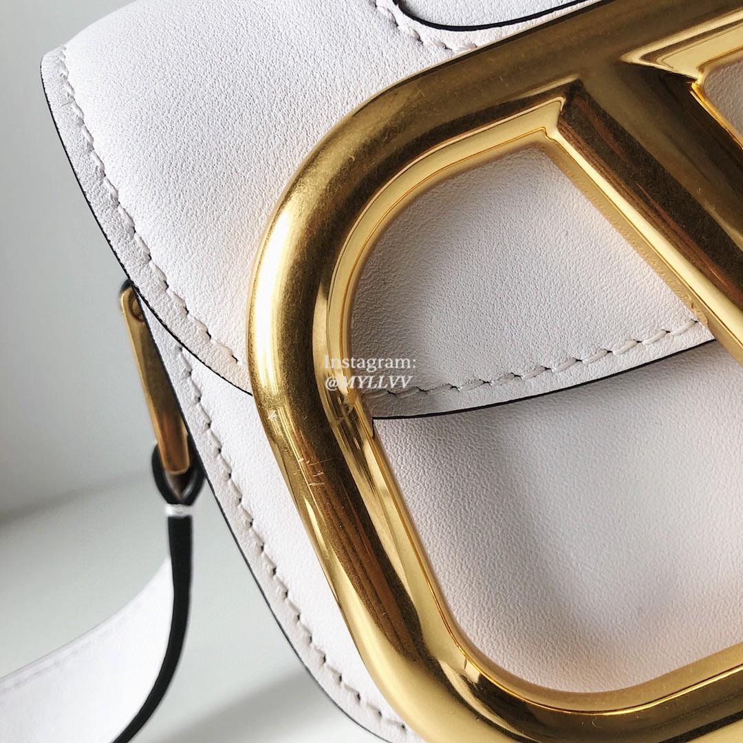 Valentino Garavani Maxi Cowhide Shoulder Bag White Gold 1986S
