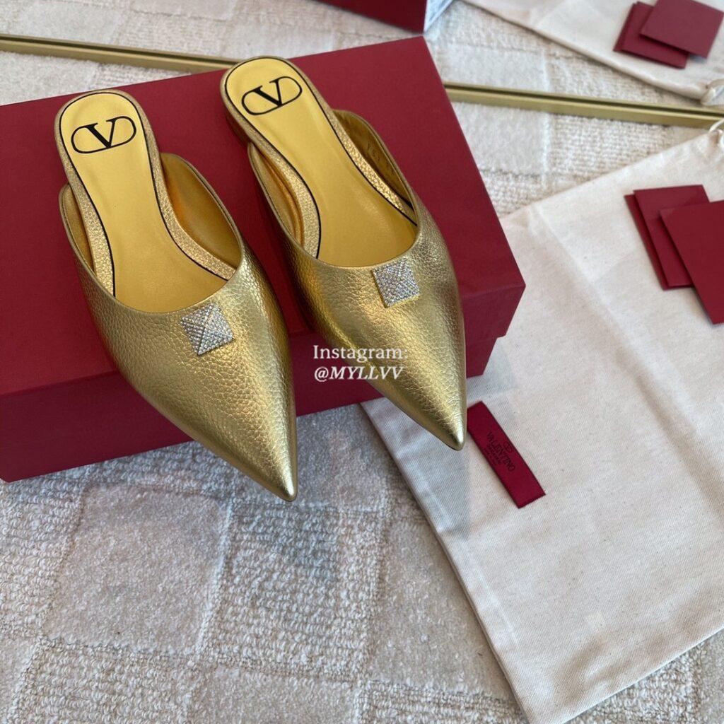 Top Quality Version:MYLLVV » Valentino Garavani One Big Rivet Cowhide Slippers Shoe Gold