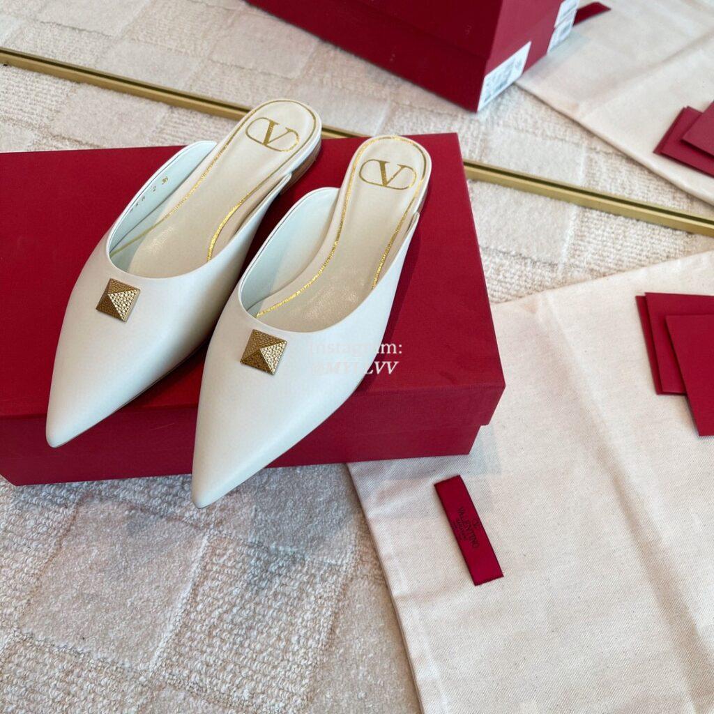 Top Quality Version:MYLLVV » Valentino Garavani One Big Rivet Cowhide Slippers Shoe White