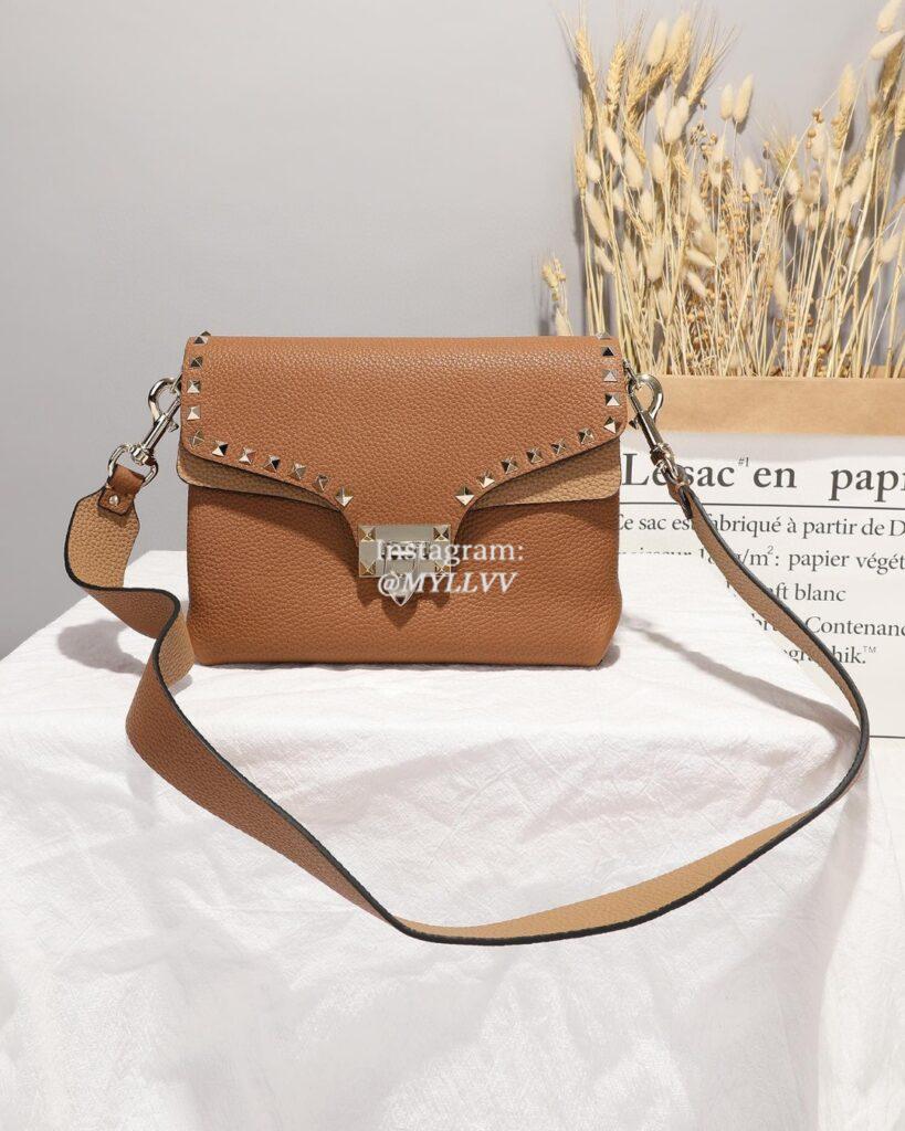 Top Quality Version:MYLLVV » Valentino Garavani Rockstud Cowhide Shoulder Bag Caramel 5519