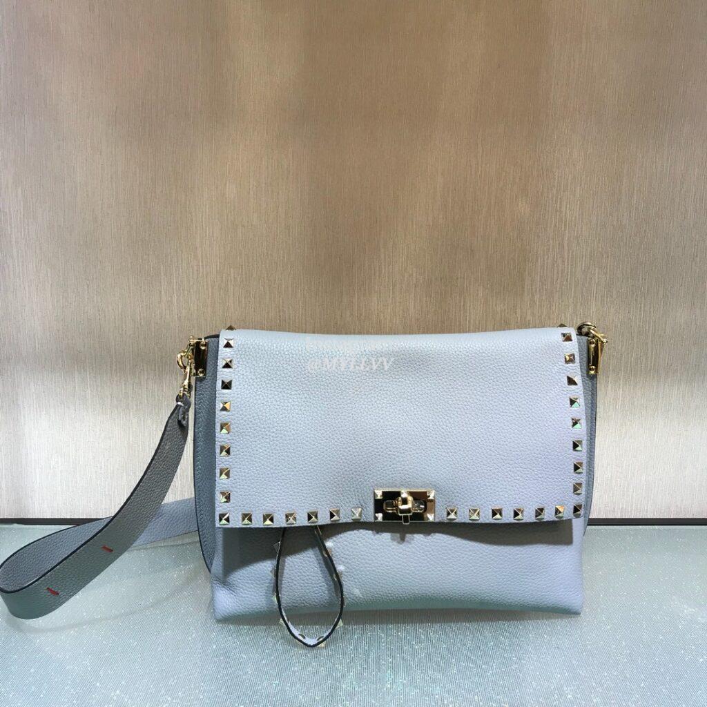 Top Quality Version:MYLLVV » Valentino Garavani Rockstud Cowhide Shoulder Bag Light Blue 2V111