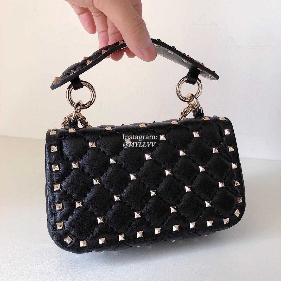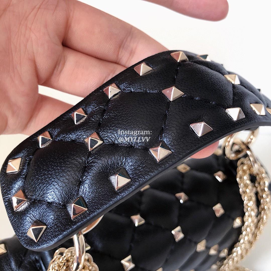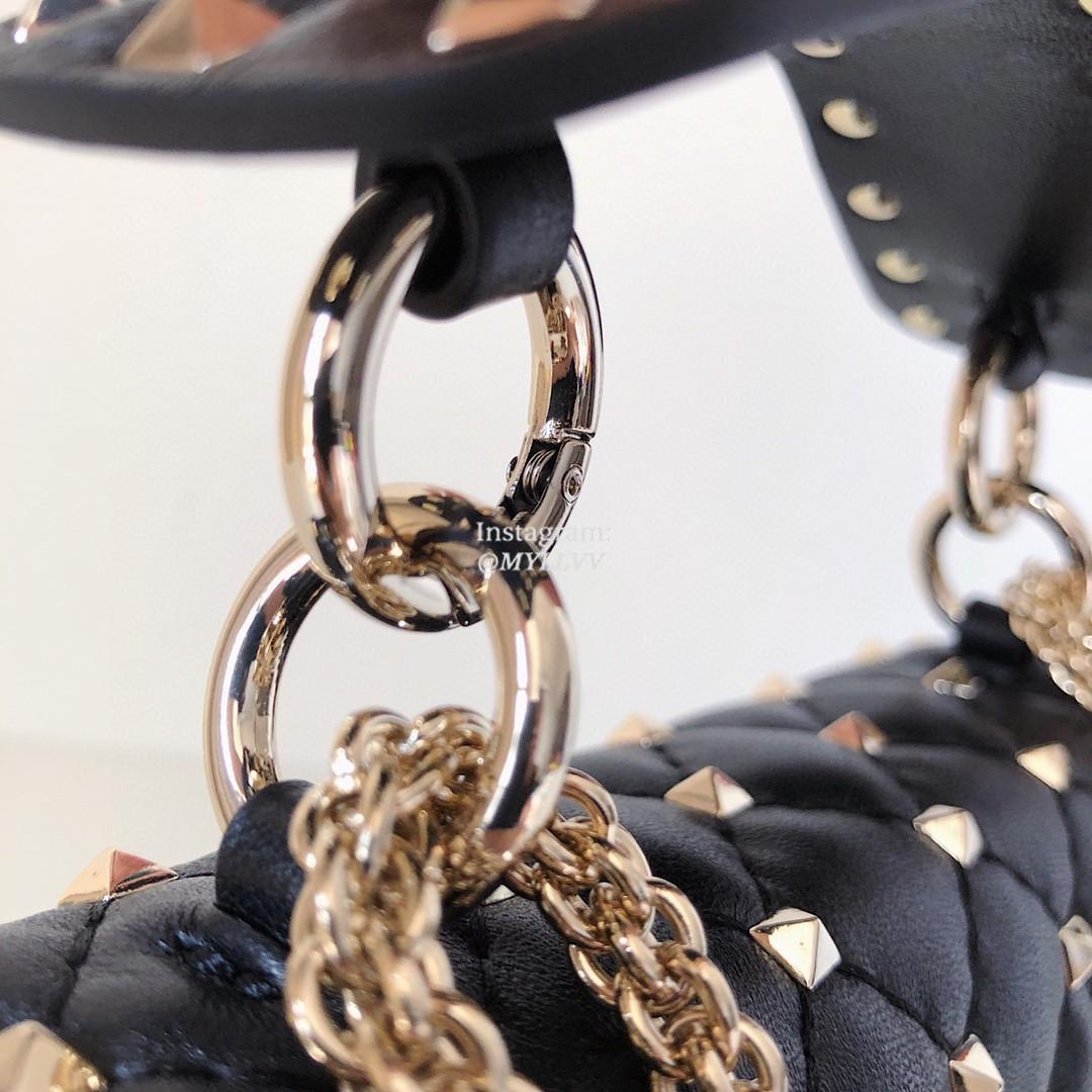 Top Quality Version:MYLLVV » Valentino Garavani Rockstud Lambskin Shoulder Bag Black Gold 0124