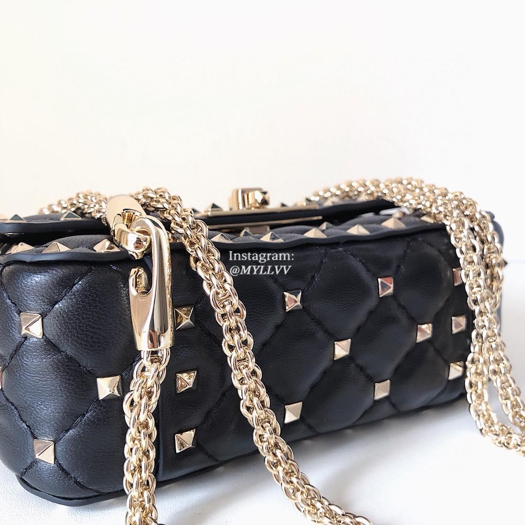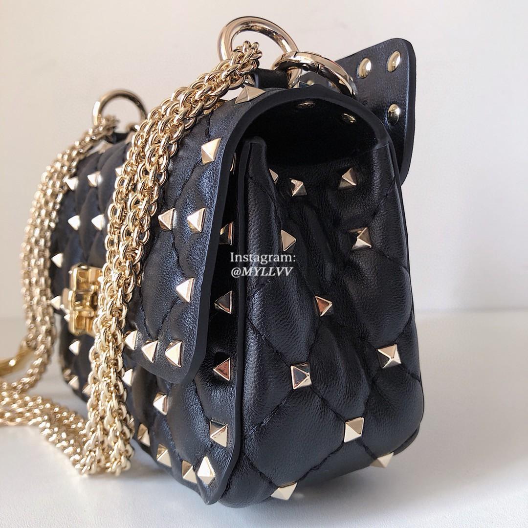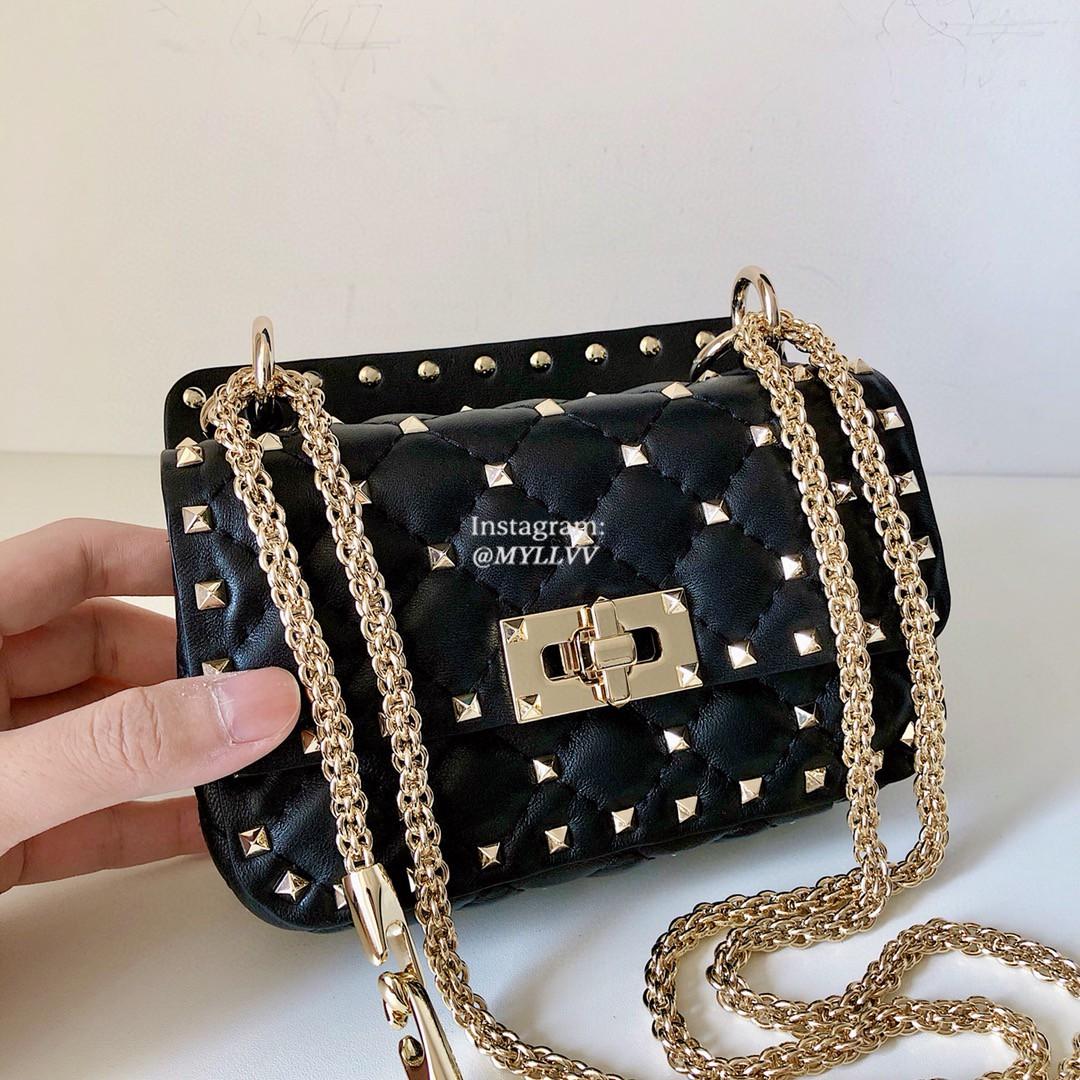 Top Quality Version:MYLLVV » Valentino Garavani Rockstud Lambskin Shoulder Bag Black Gold 0124