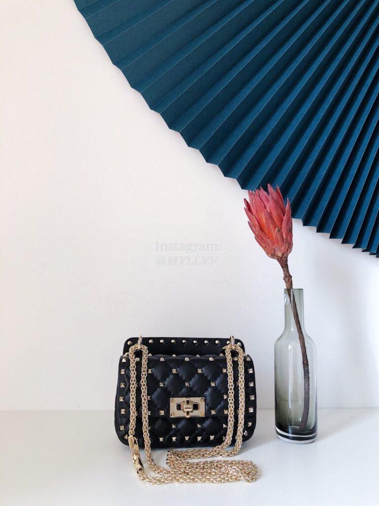 Top Quality Version:MYLLVV » Valentino Garavani Rockstud Lambskin Shoulder Bag Black Gold 0124