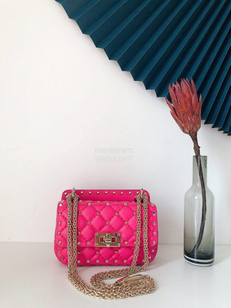 Top Quality Version:MYLLVV » Valentino Garavani Rockstud Lambskin Shoulder Bag Rose Red 0124