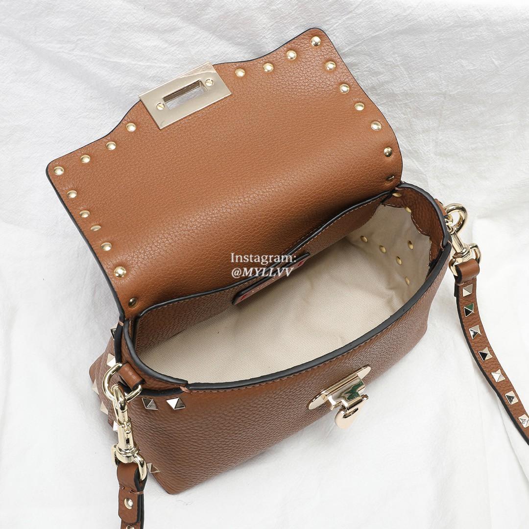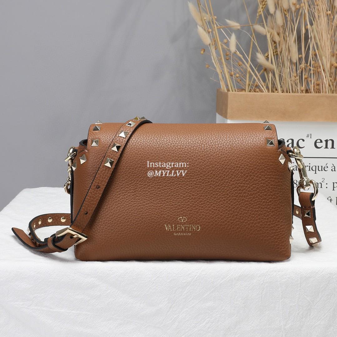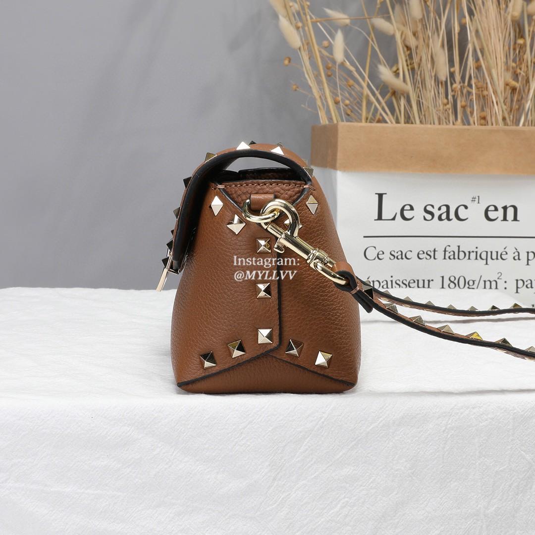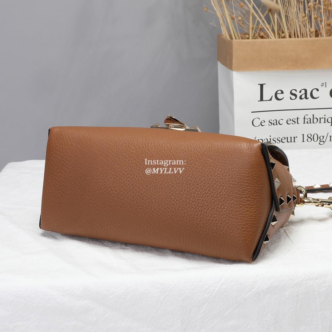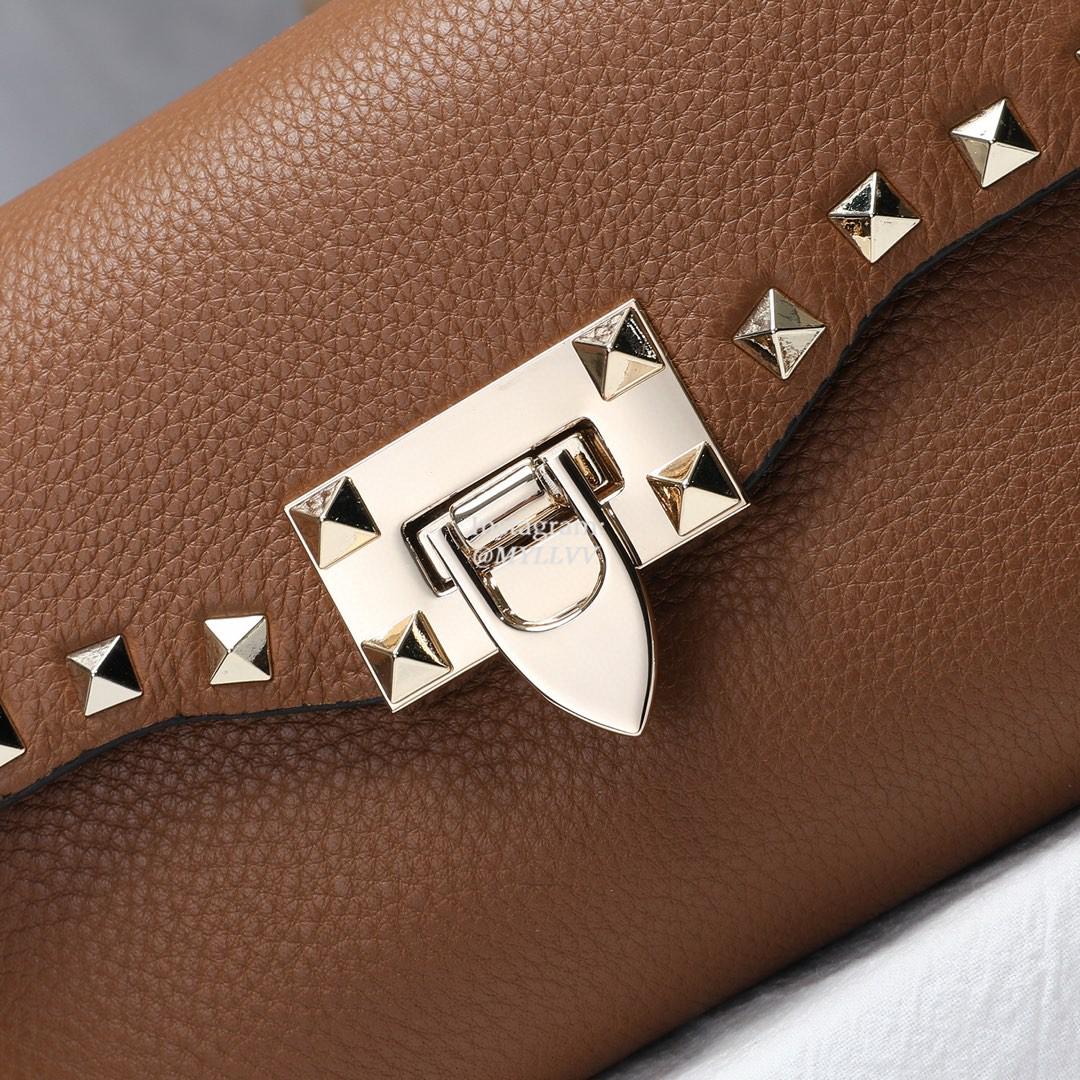 Top Quality Version:MYLLVV » Valentino Garavani Rockstud Rivet Cowhide Shoulder Bag Brown 0095