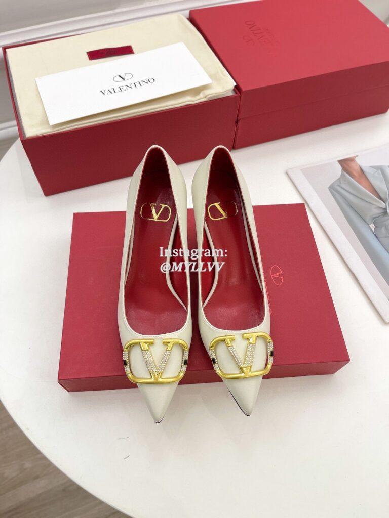 Top Quality Version:MYLLVV » Valentino Garavani Roman Stud Cowhide High Heel Shoe White With Gold Diamonds