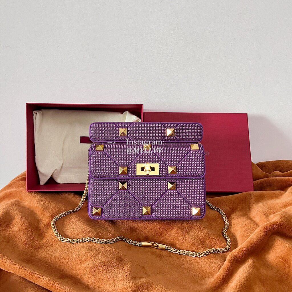 Dimension: 25.0 × 16.0 × 10.0 cm Top Quality Version:MYLLVV » Valentino Garavani Roman Stud Diamonds Chain Bag Purple 0135