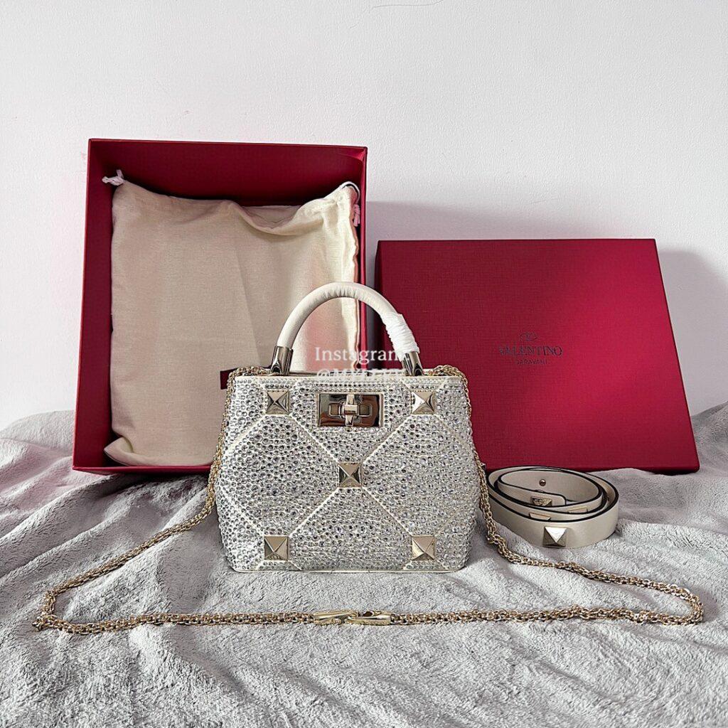 Top Quality Version:MYLLVV » Valentino Garavani Roman Stud Diamonds Shoulder Bag White 0136