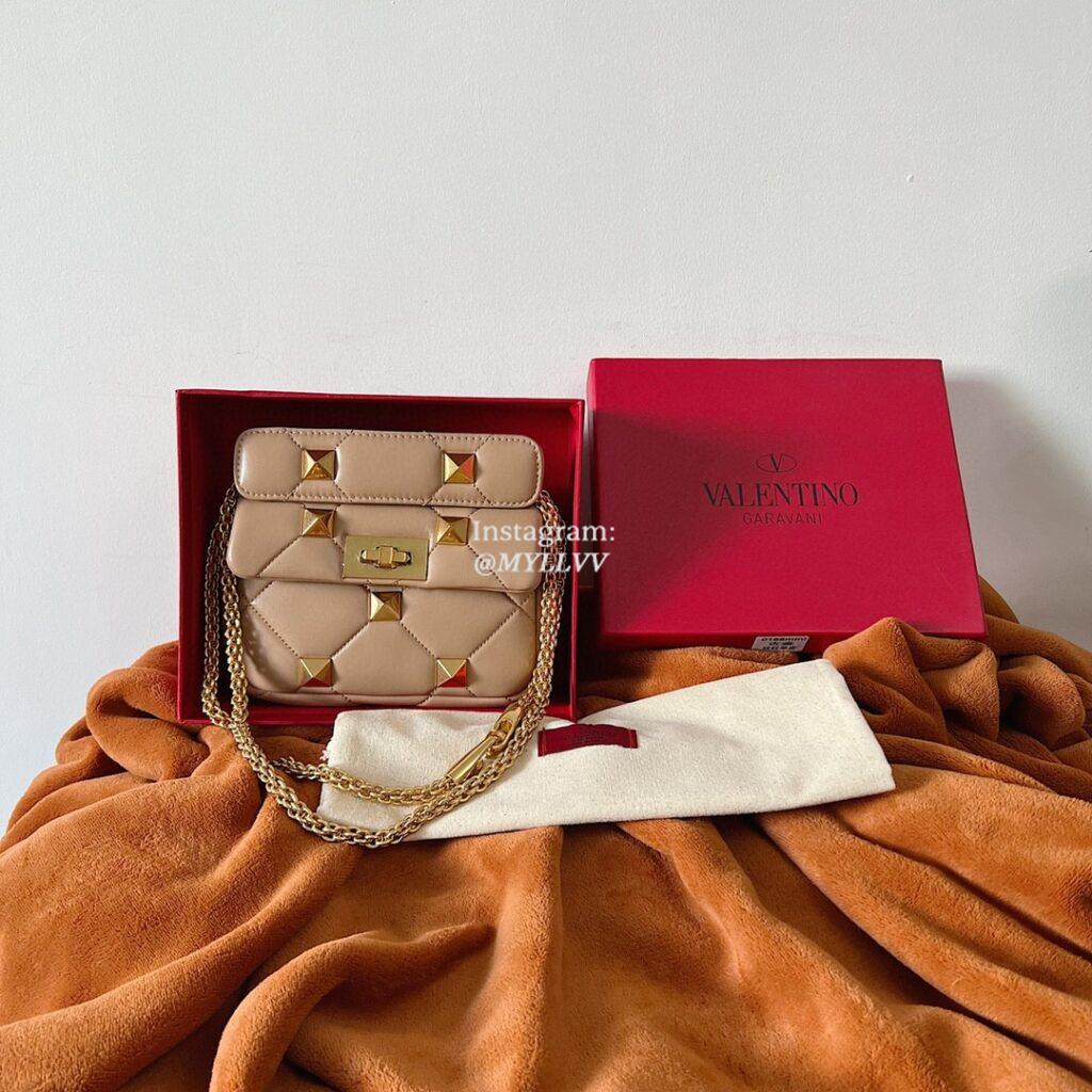 Top Quality Version:MYLLVV » Valentino Garavani Roman Stud Lambskin Chain Bag Apricot 0188M