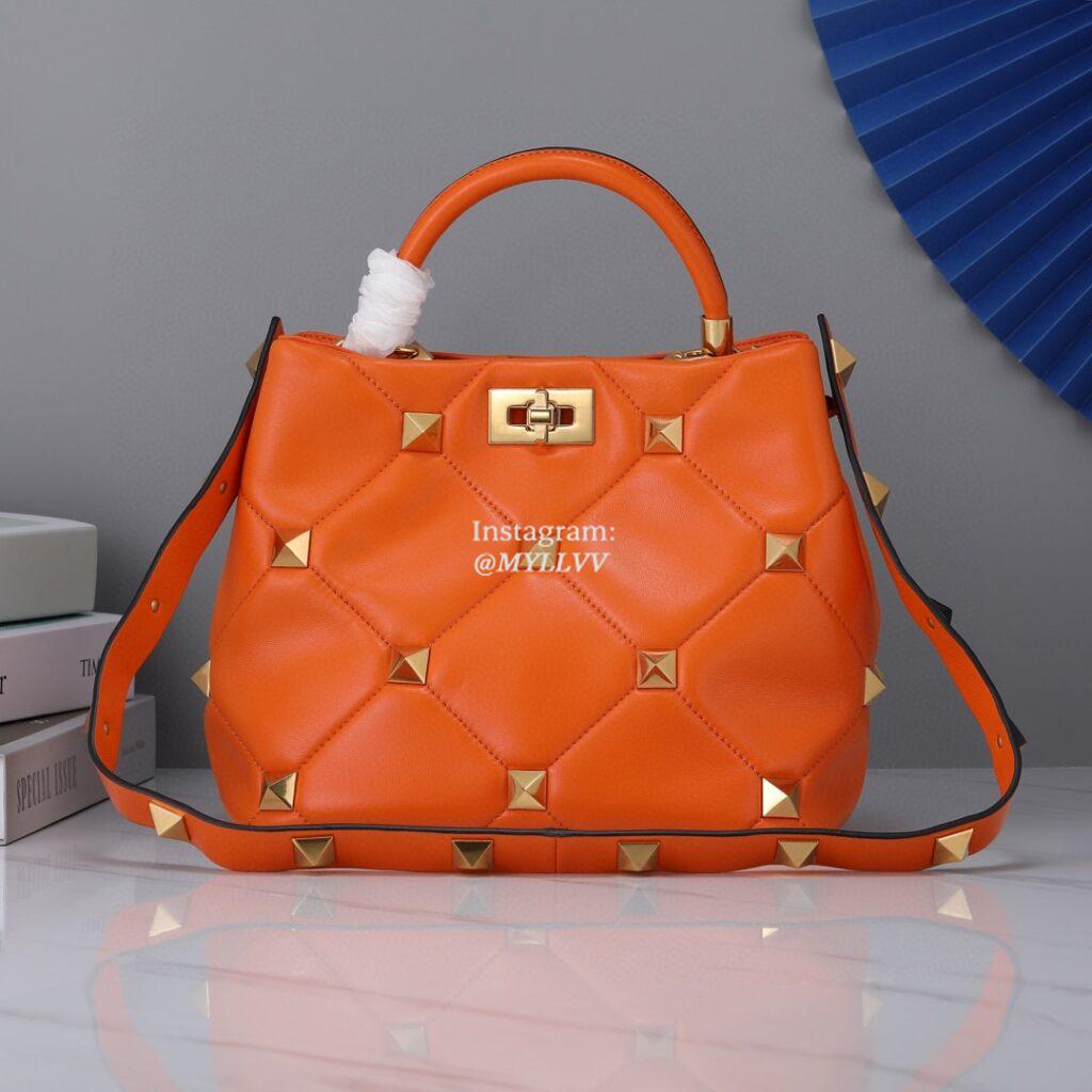 Top Quality Version:MYLLVV » Valentino Garavani Roman Stud Lambskin Handle Bag Orange 00134