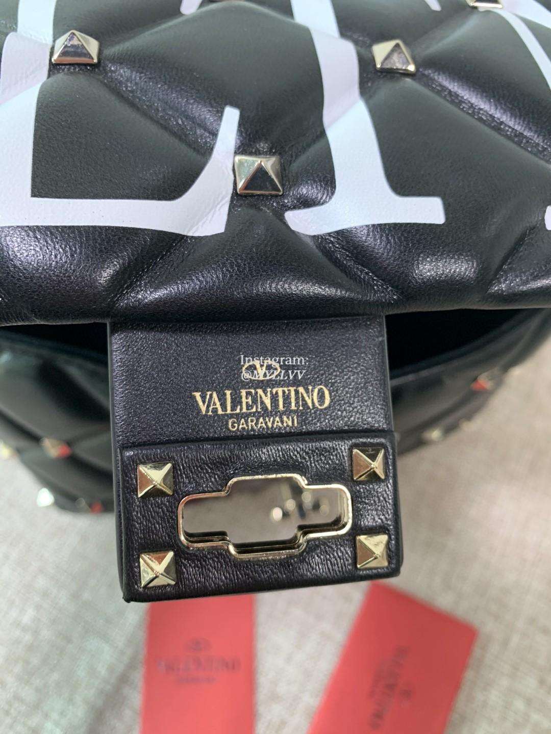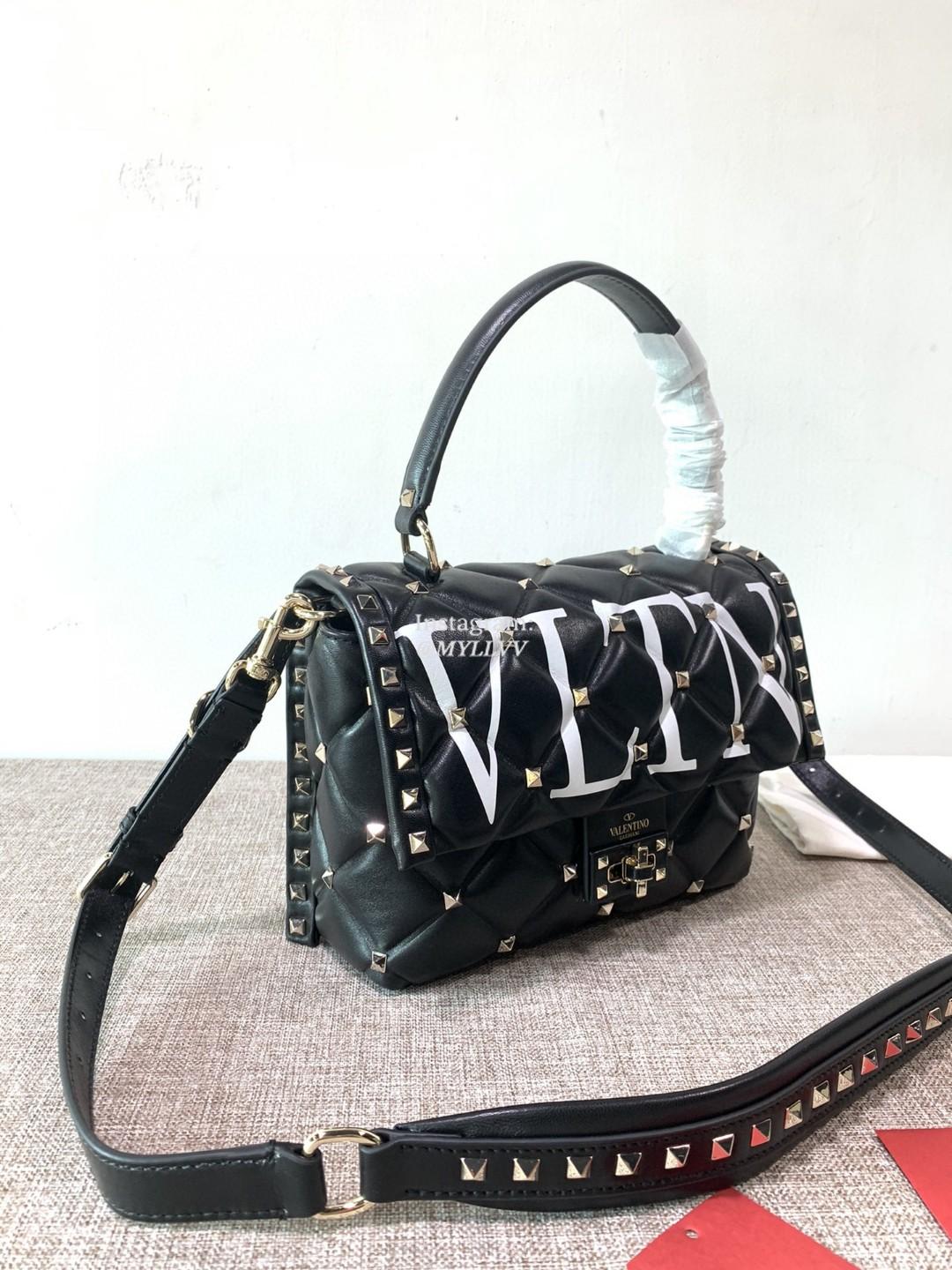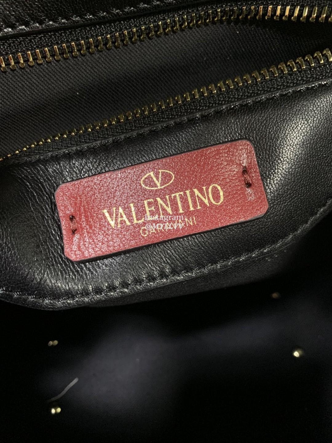 Top Quality Version:MYLLVV » Valentino Garavani Roman Stud Lambskin Handle Shoulder Bag Black 0055