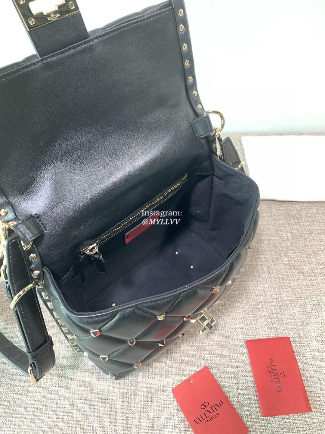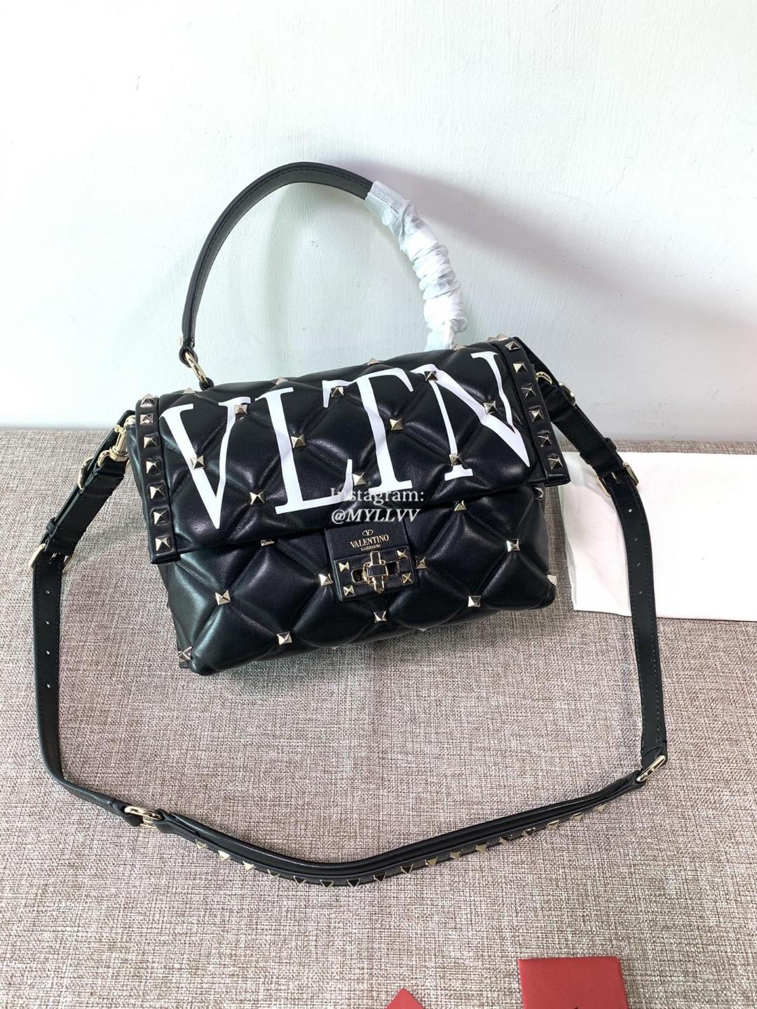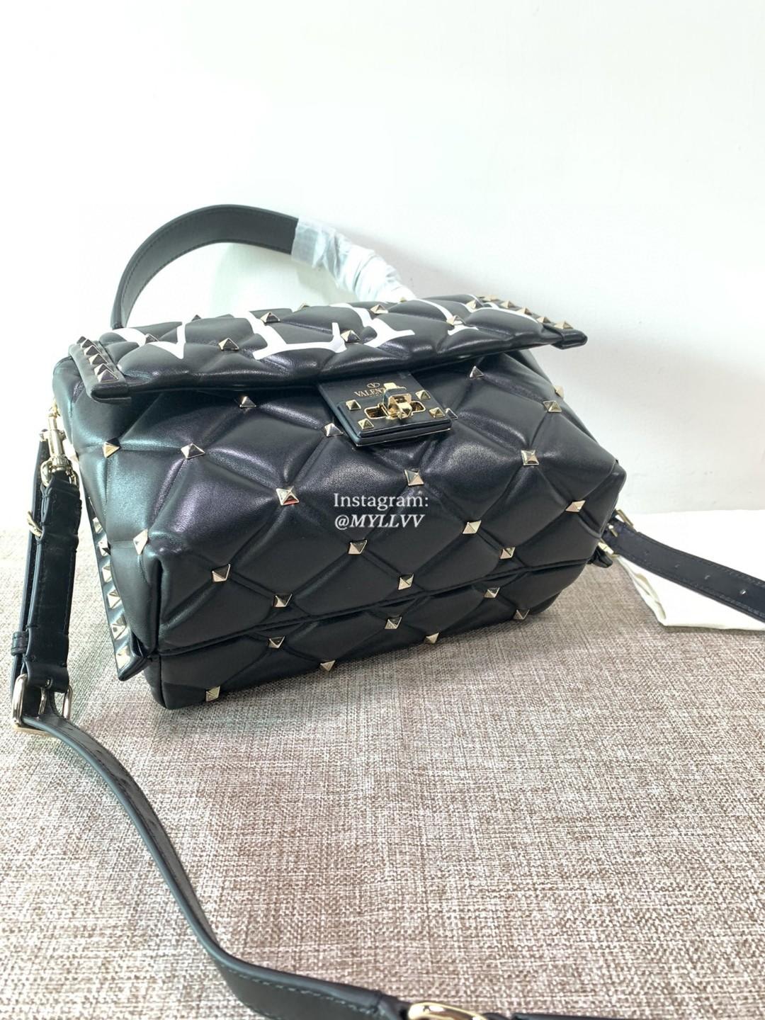 Top Quality Version:MYLLVV » Valentino Garavani Roman Stud Lambskin Handle Shoulder Bag Black 0055