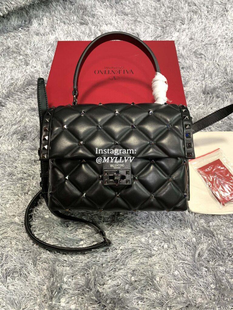 Top Quality Version:MYLLVV » Valentino Garavani Roman Stud Lambskin Handle Shoulder Bag Black 0055