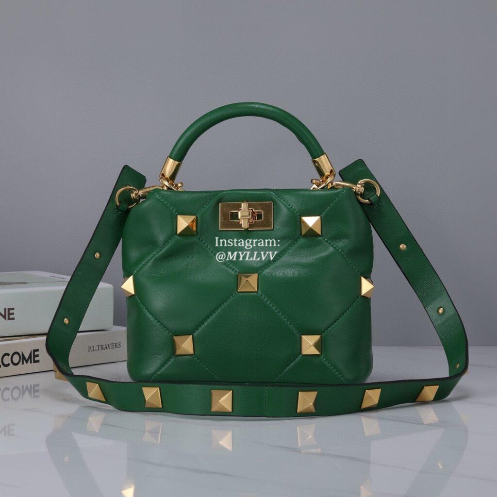 Top Quality Version:MYLLVV » Valentino Garavani Roman Stud Lambskin Handle Shoulder Bag Green 0133