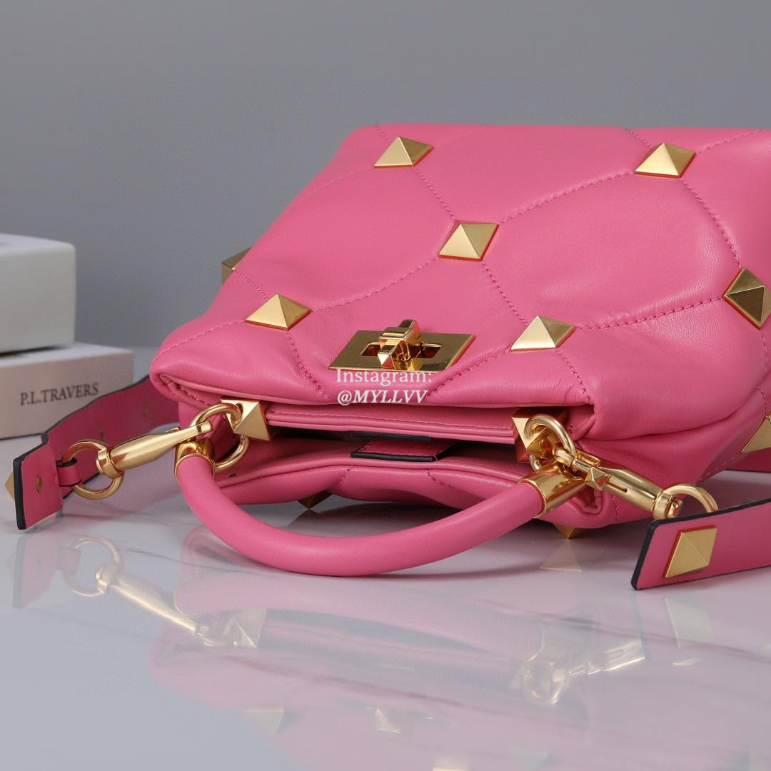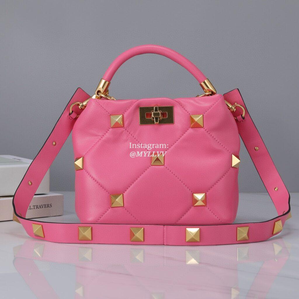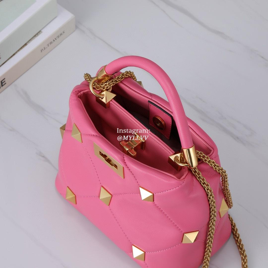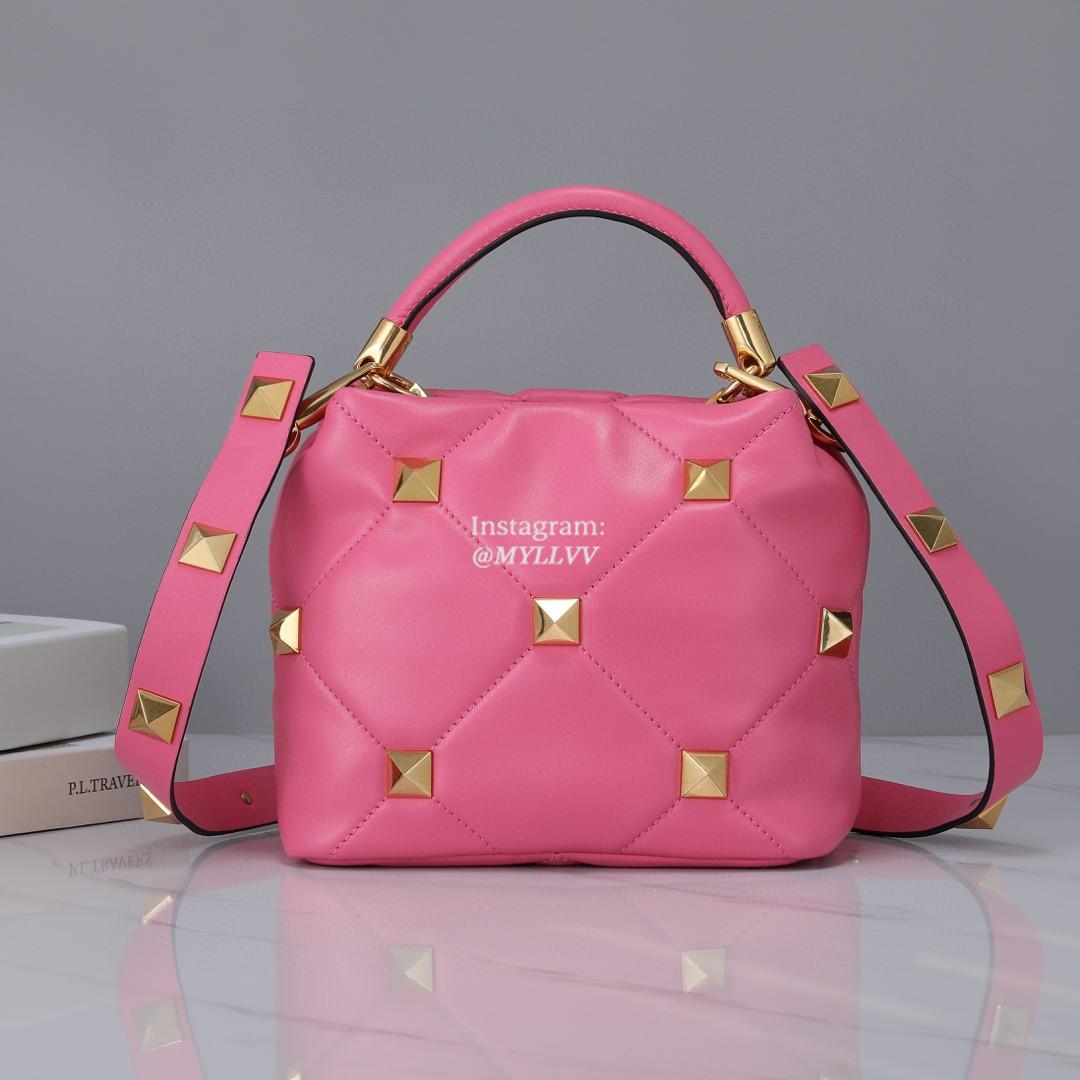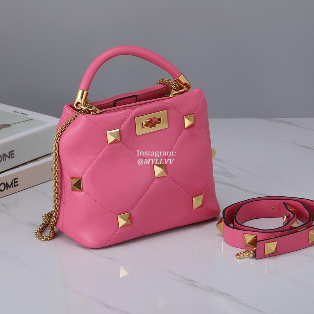 Top Quality Version:MYLLVV » Valentino Garavani Roman Stud Lambskin Handle Shoulder Bag Rose Red 0133