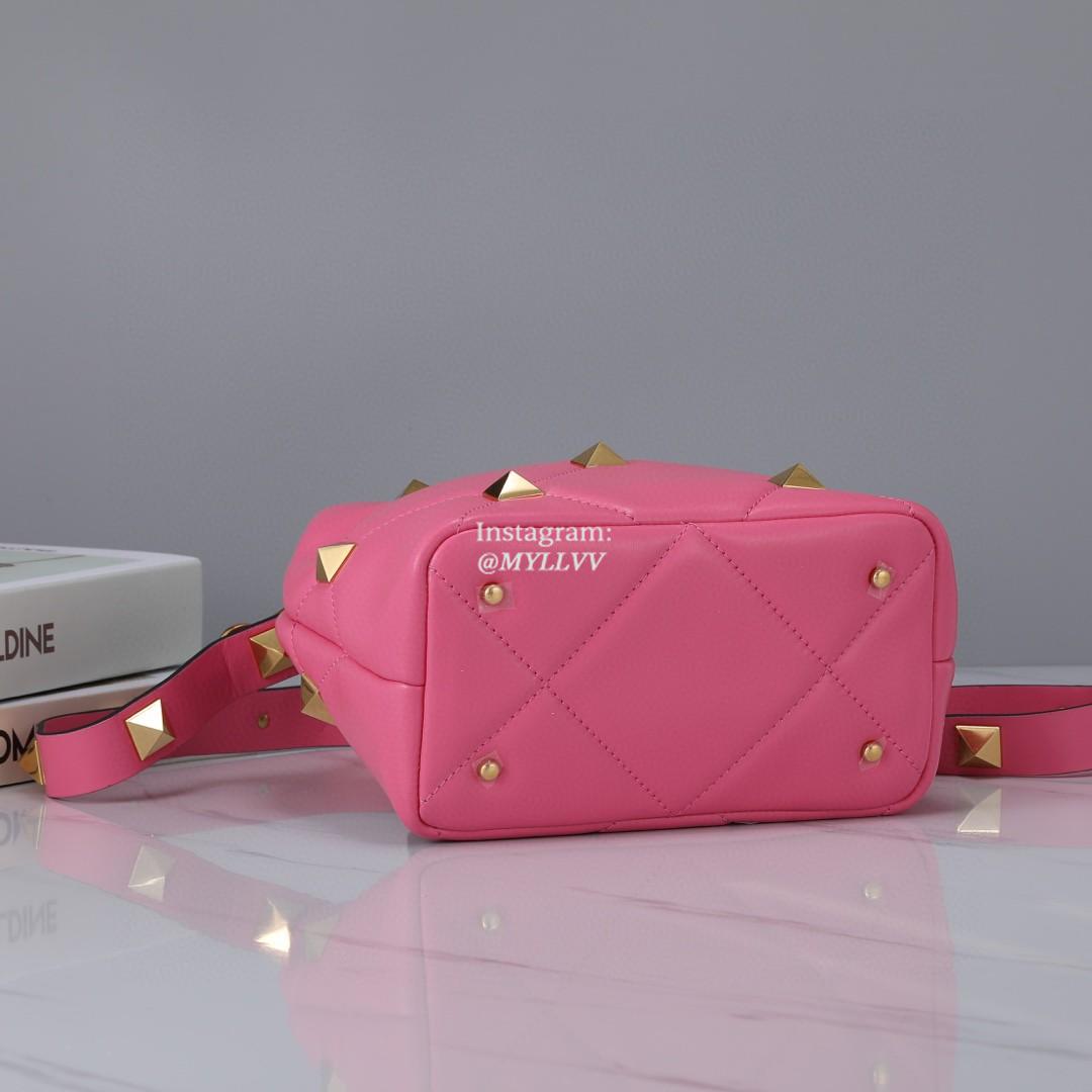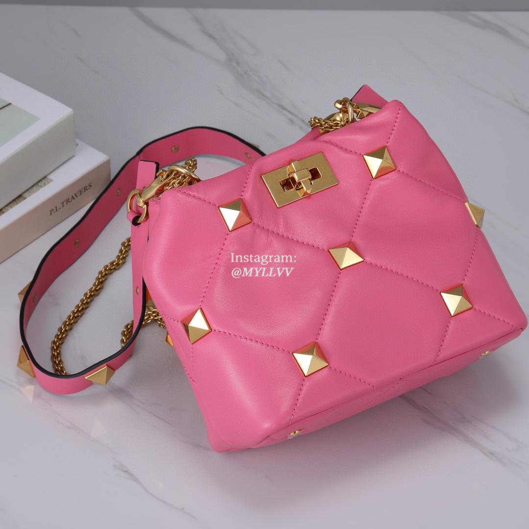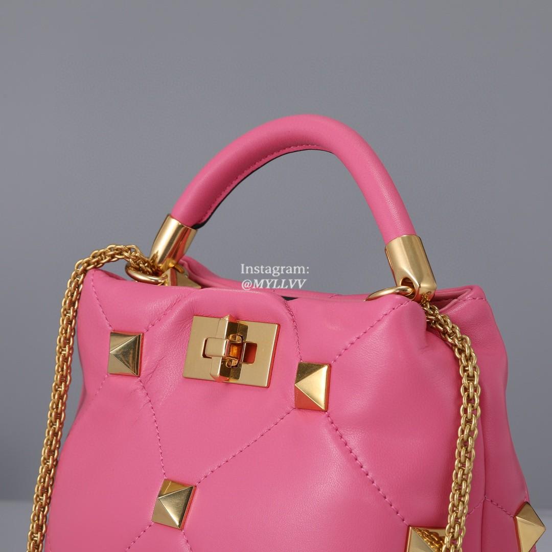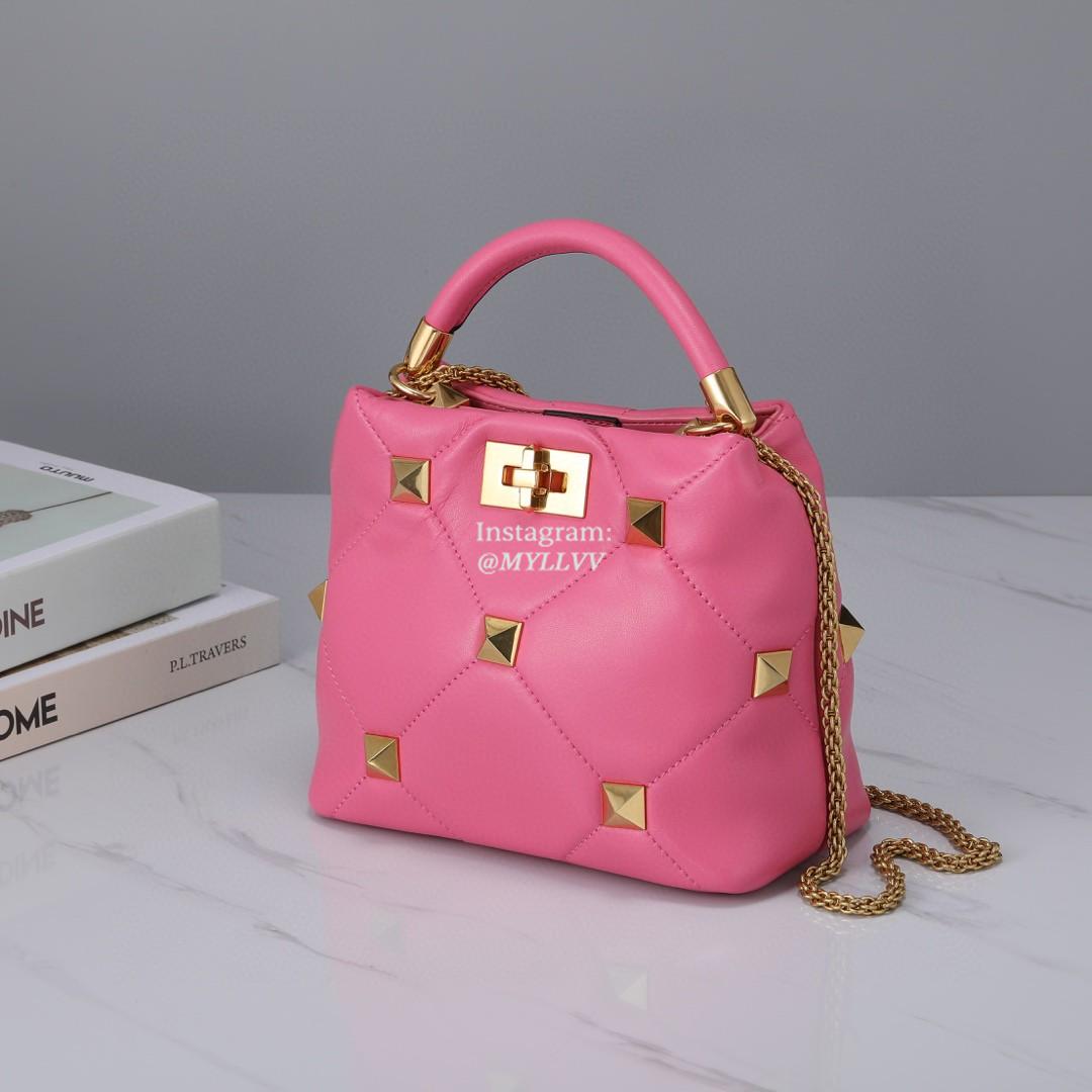Top Quality Version:MYLLVV » Valentino Garavani Roman Stud Lambskin Handle Shoulder Bag Rose Red 0133