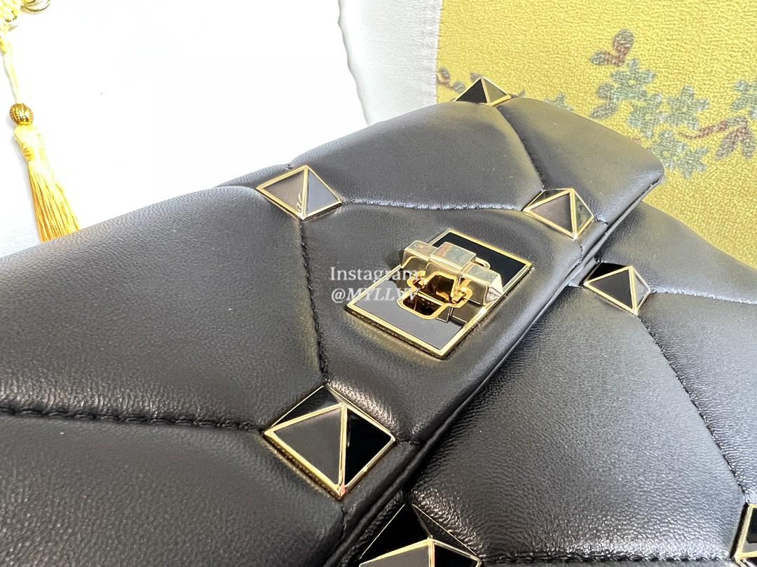 Top Quality Version:MYLLVV » Valentino Garavani Roman Stud Lambskin Large Shoulder Bag Black 1060L