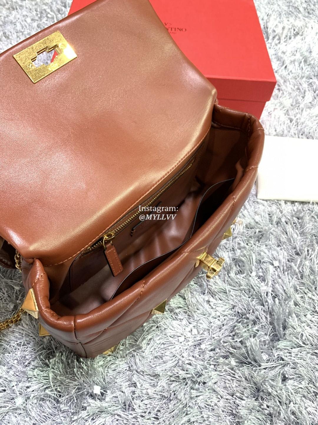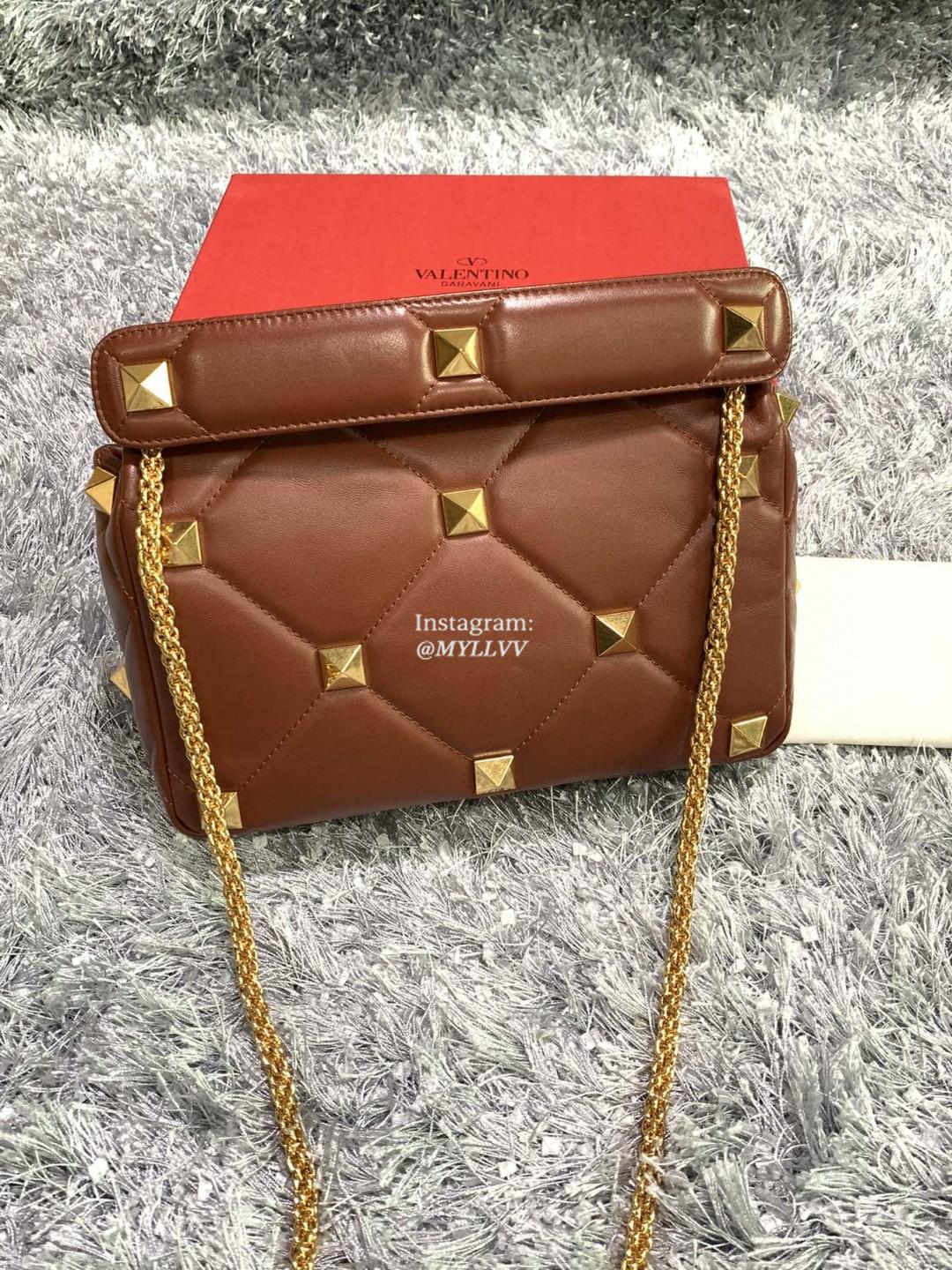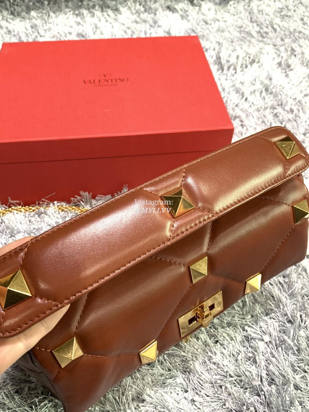 Top Quality Version:MYLLVV » Valentino Garavani Roman Stud Lambskin Large Shoulder Bag Brown 0130