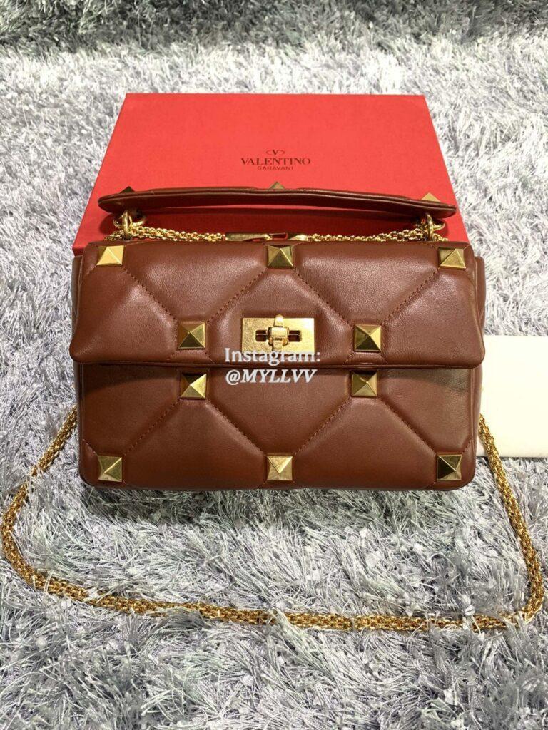 Top Quality Version:MYLLVV » Valentino Garavani Roman Stud Lambskin Large Shoulder Bag Brown 0130