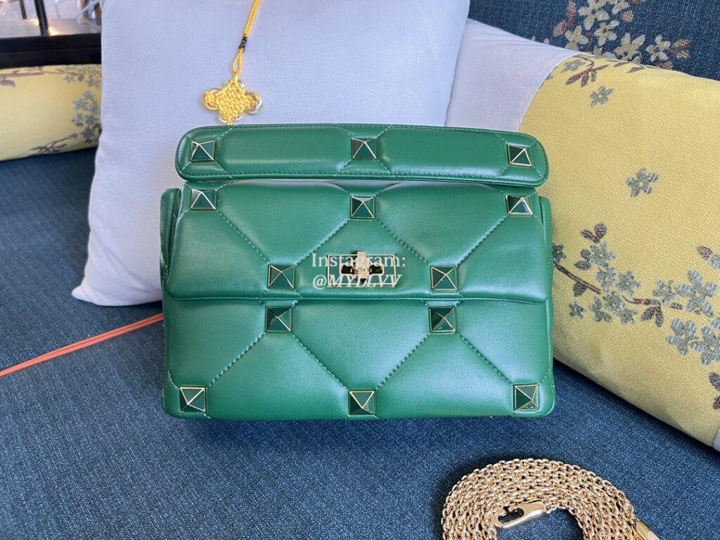 Top Quality Version:MYLLVV » Valentino Garavani Roman Stud Lambskin Large Shoulder Bag Green 1060L