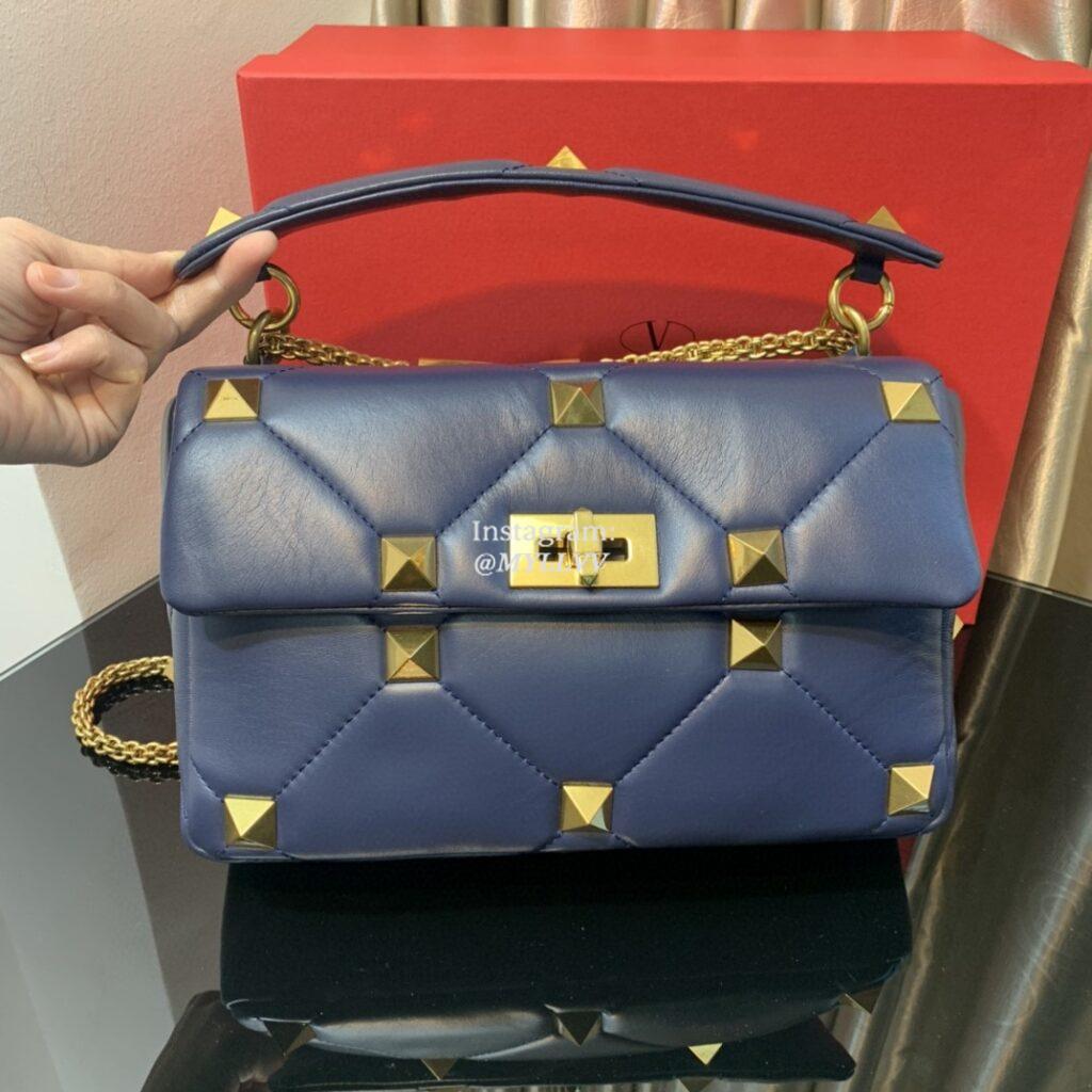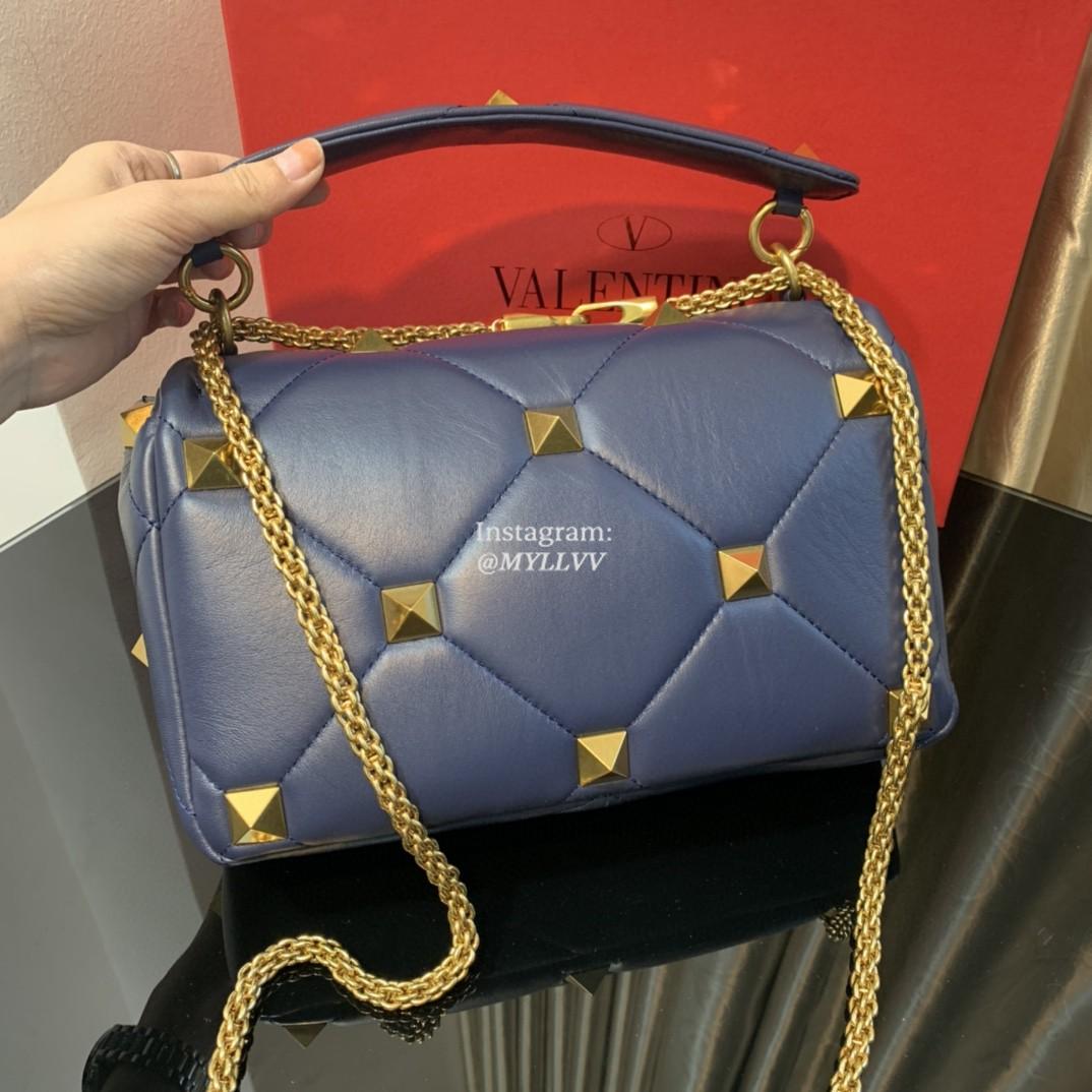 Top Quality Version:MYLLVV » Valentino Garavani Roman Stud Lambskin Large Shoulder Bag Royal Blue 0130
