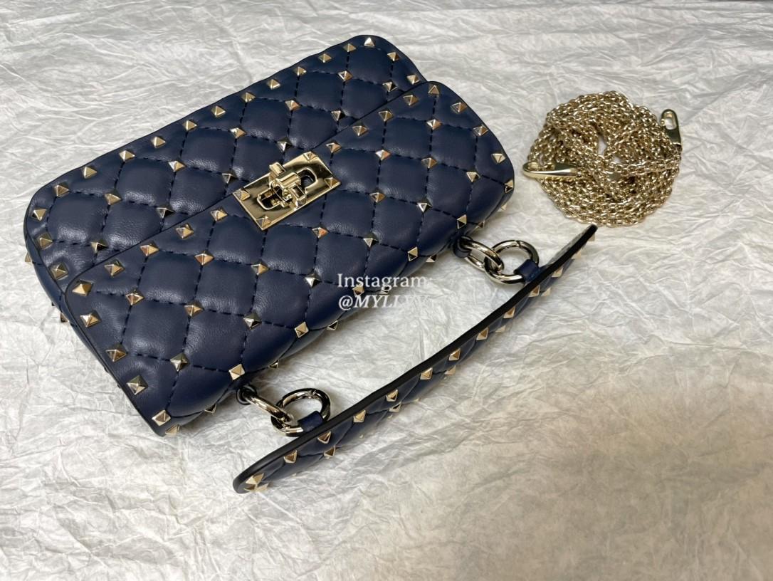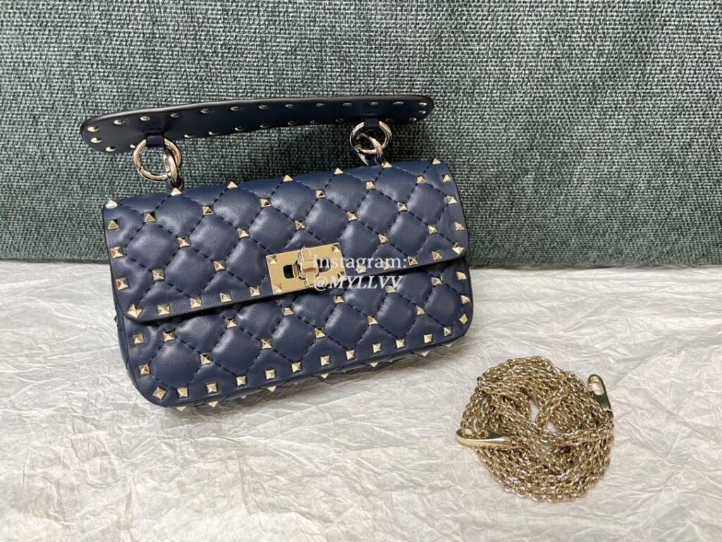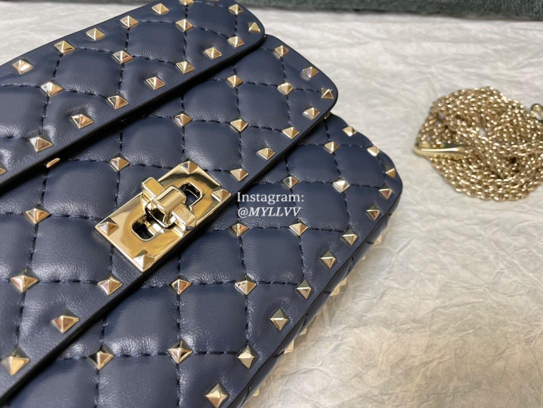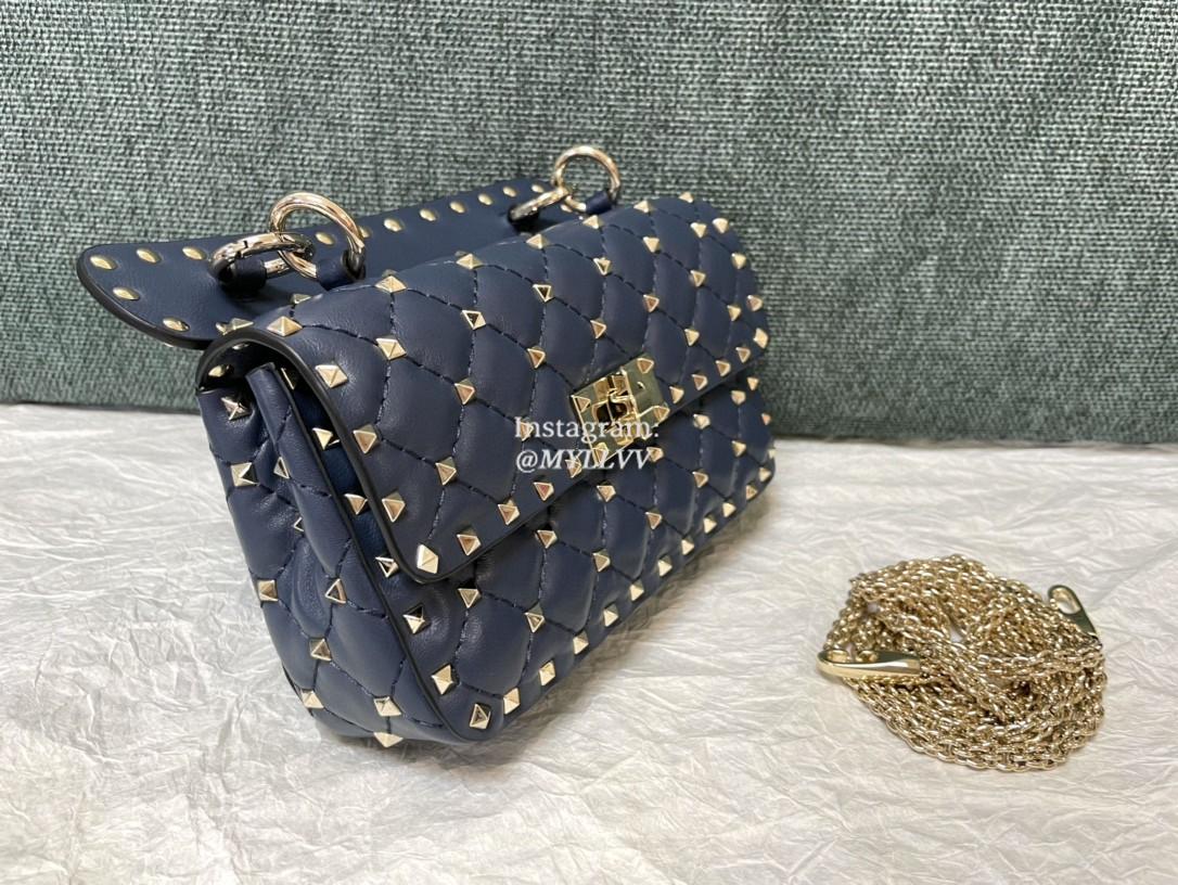 Top Quality Version:MYLLVV » Valentino Garavani Roman Stud Lambskin Shoulder Bag Dark Blue 0123S