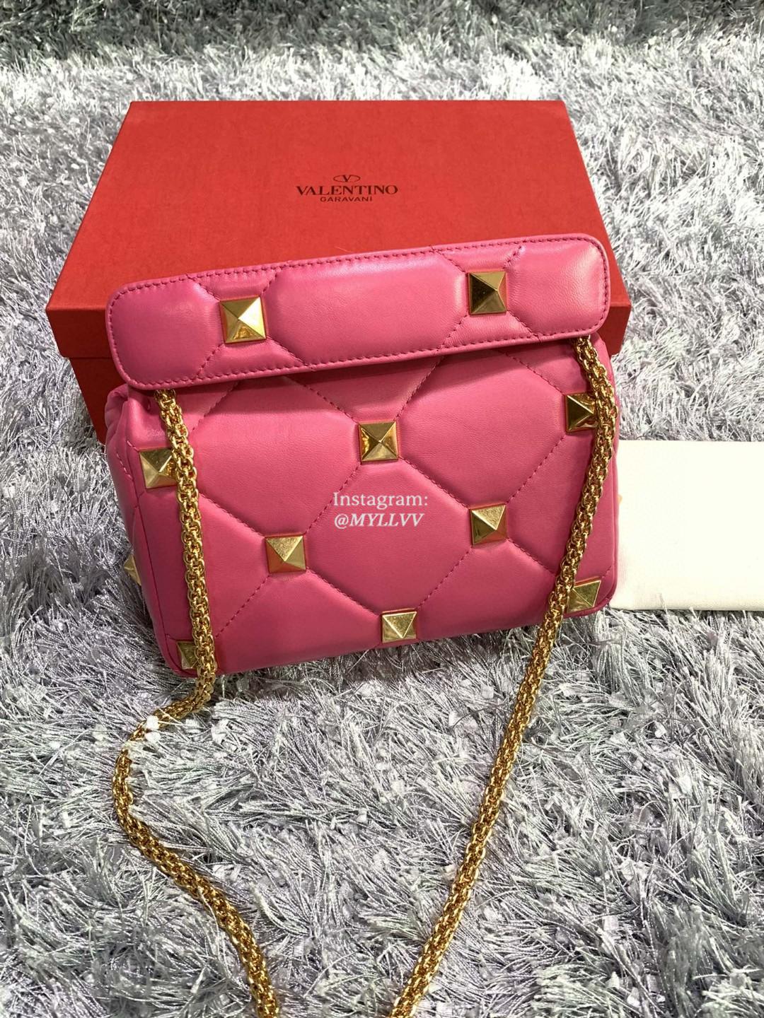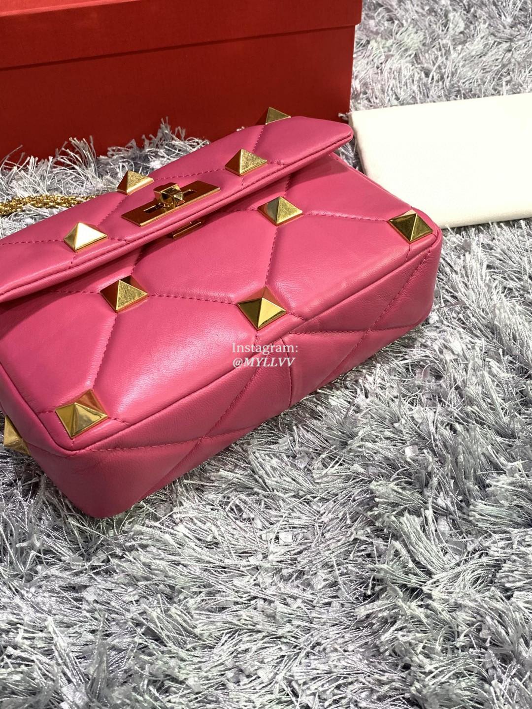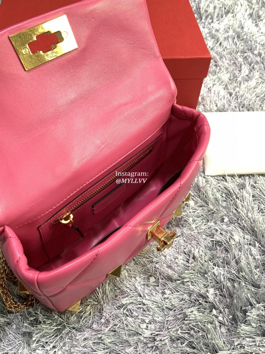 Top Quality Version:MYLLVV » Valentino Garavani Roman Stud Lambskin Small Shoulder Bag Rose Red 0129