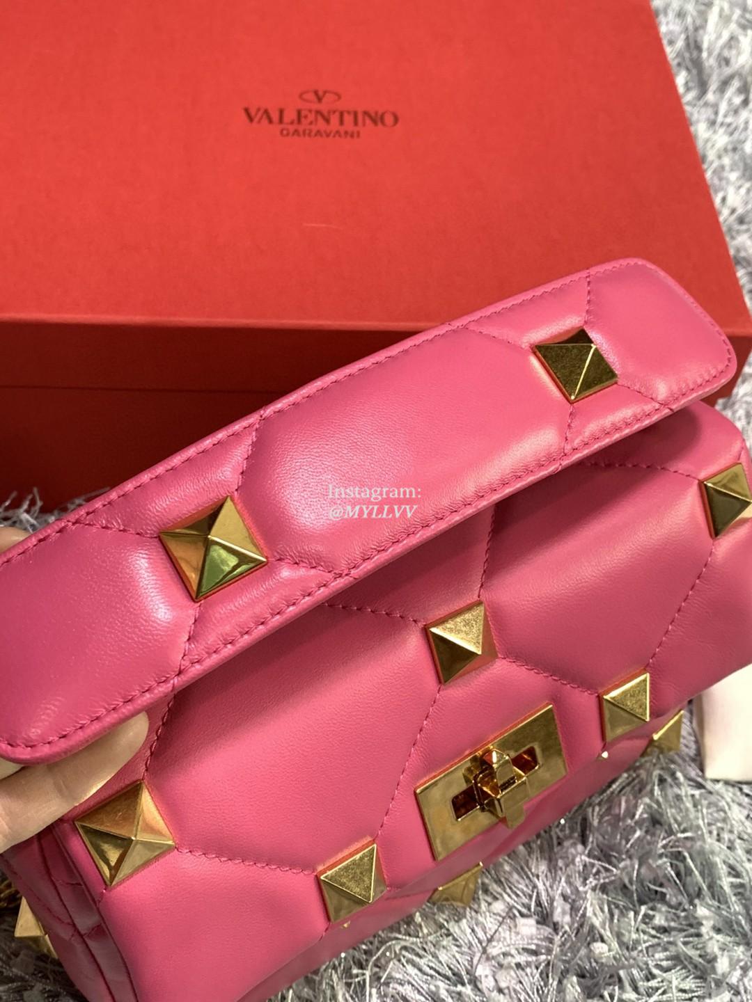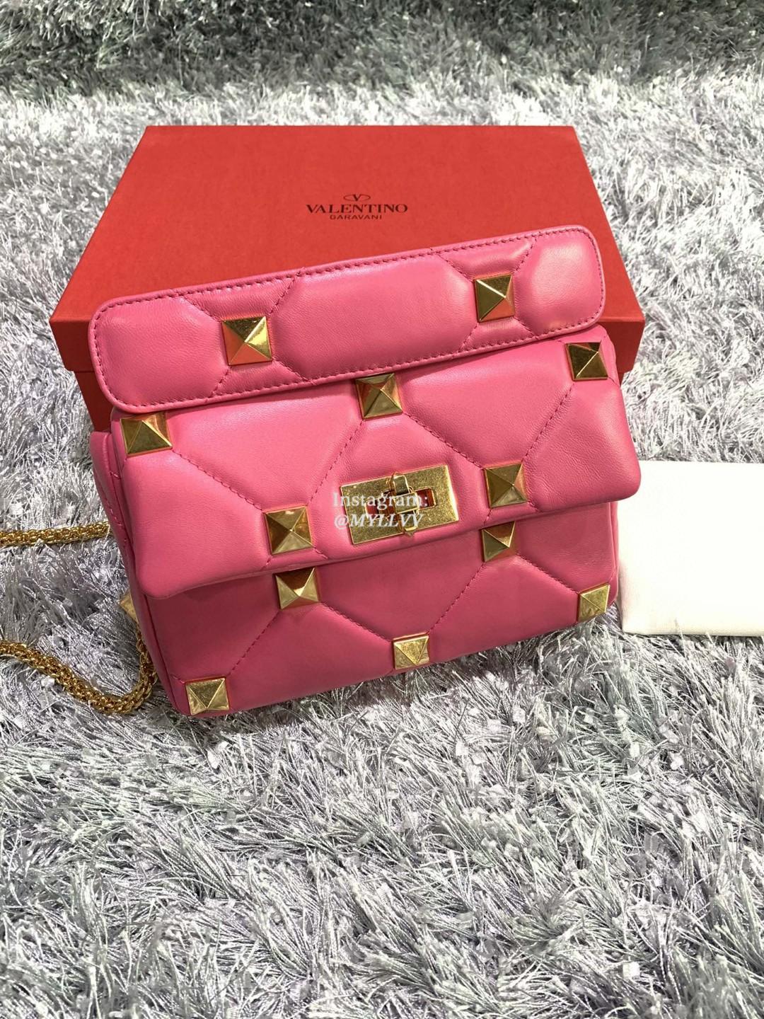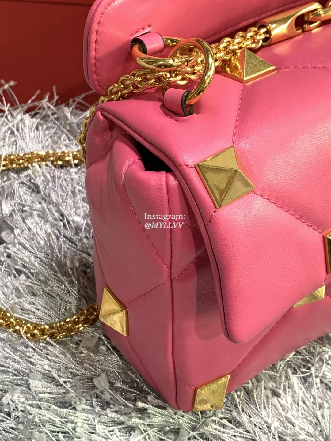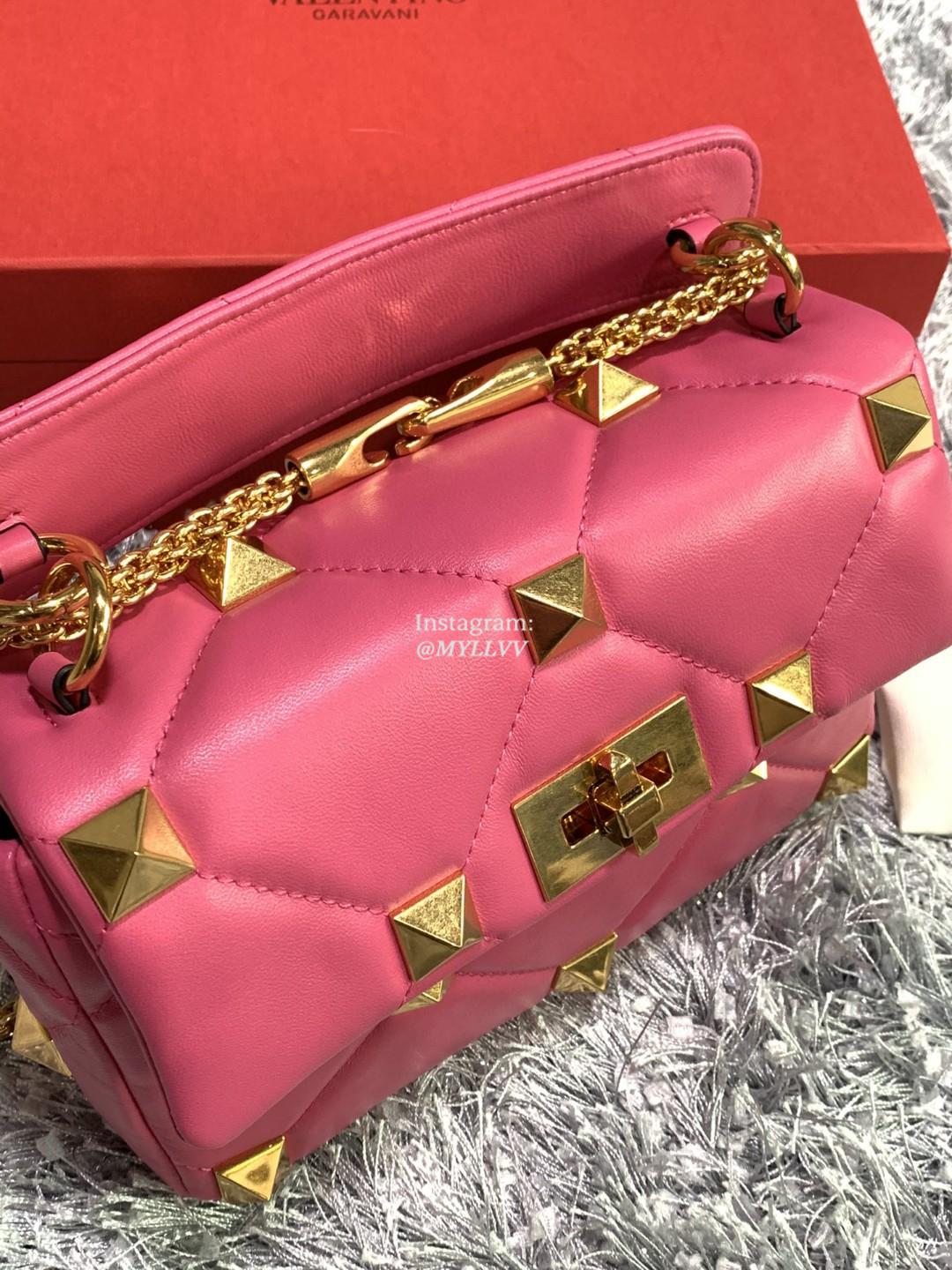 Top Quality Version:MYLLVV » Valentino Garavani Roman Stud Lambskin Small Shoulder Bag Rose Red 0129