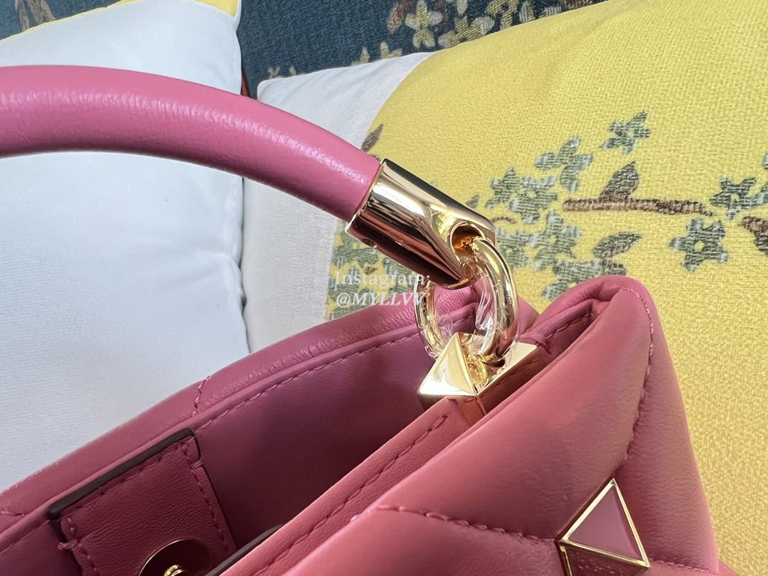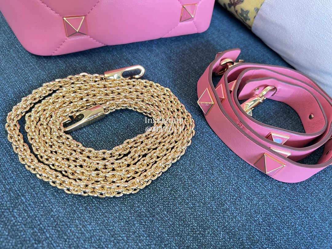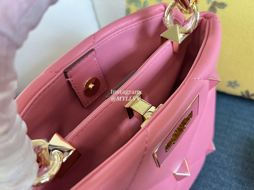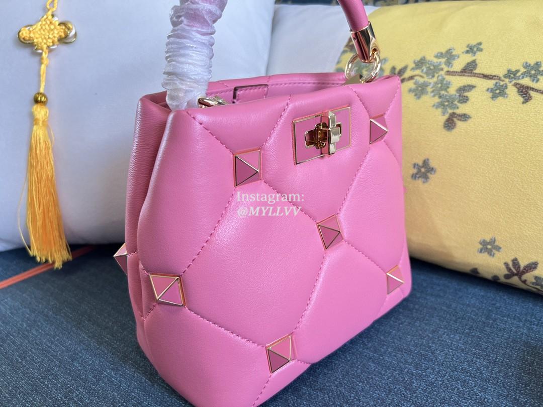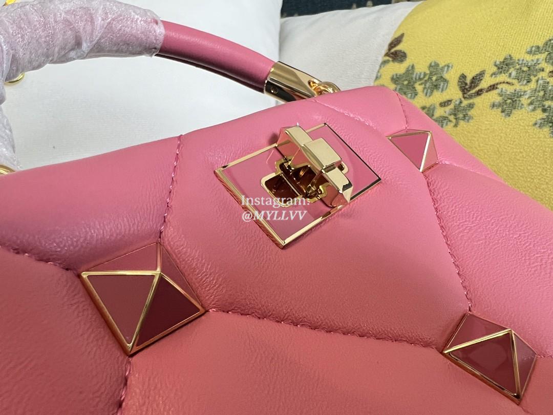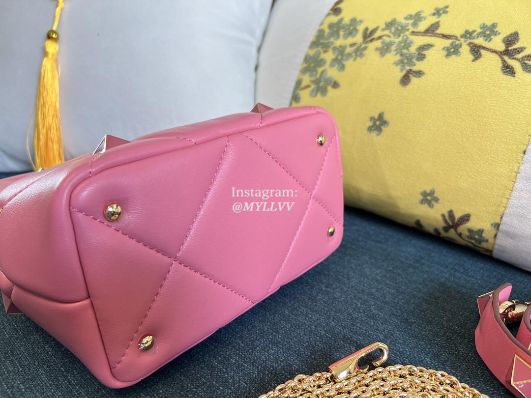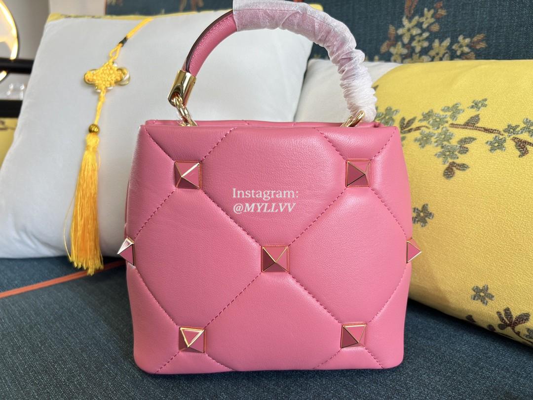 Top Quality Version:MYLLVV » Valentino Garavani Roman Stud Rivet Lambskin Bucket Bag Rose Red 1097