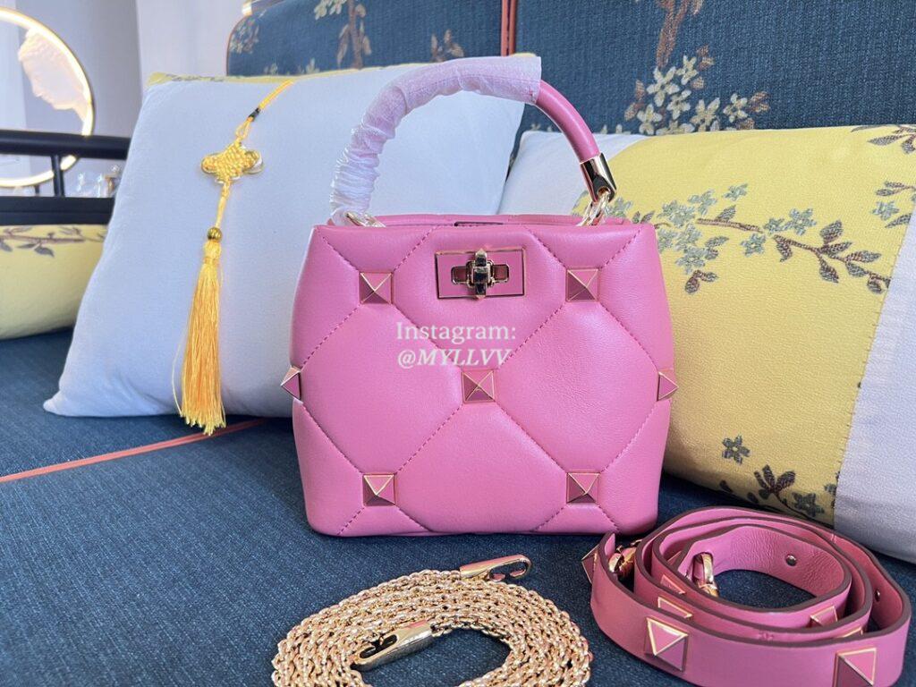 Top Quality Version:MYLLVV » Valentino Garavani Roman Stud Rivet Lambskin Bucket Bag Rose Red 1097
