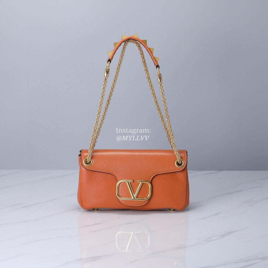 Top Quality Version:MYLLVV » Valentino Garavani Stud Sign V Logo Signature Cowhide Shoulder Bag Orange 2033