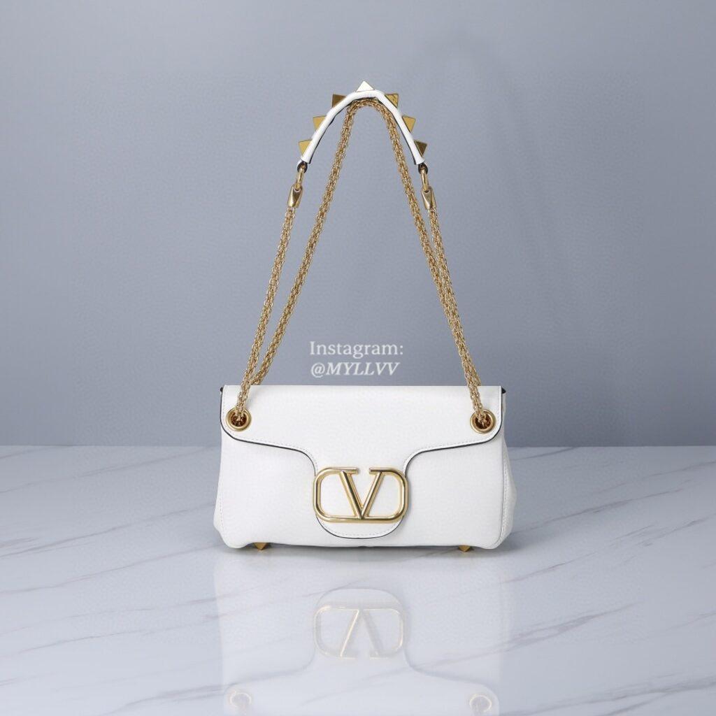 Top Quality Version:MYLLVV » Valentino Garavani Stud Sign V Logo Signature Cowhide Shoulder Bag White 2033