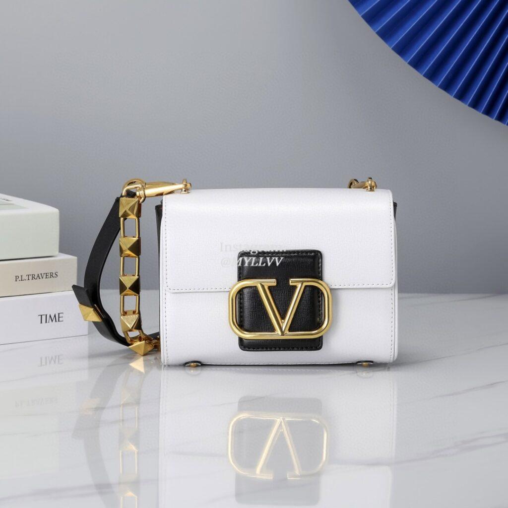 Top Quality Version:MYLLVV » Valentino Garavani Stud Sign V Logo Signature Cowhide Shoulder Bag White Black 2032